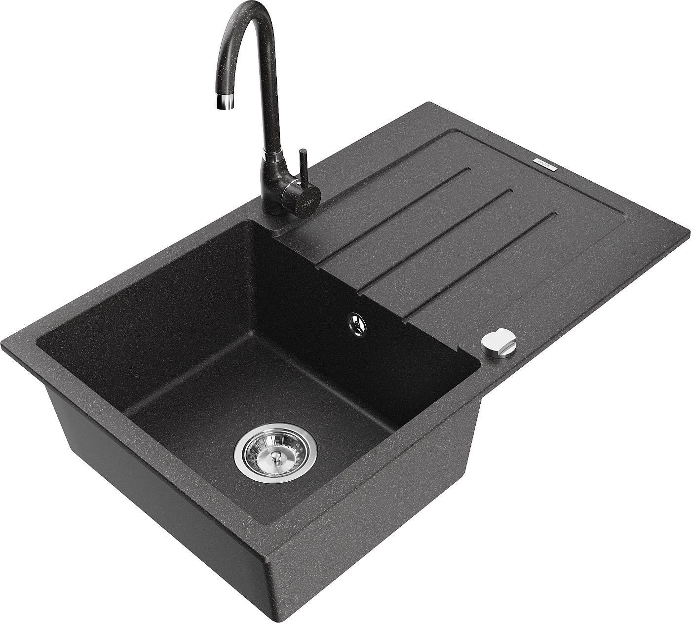 Mexen Bruno granitā izlietne ar 1 nodalījumu, ar paneli un virtuves jaucējkrānu Telma, melna, plankumaina - 6513-76-670200-76