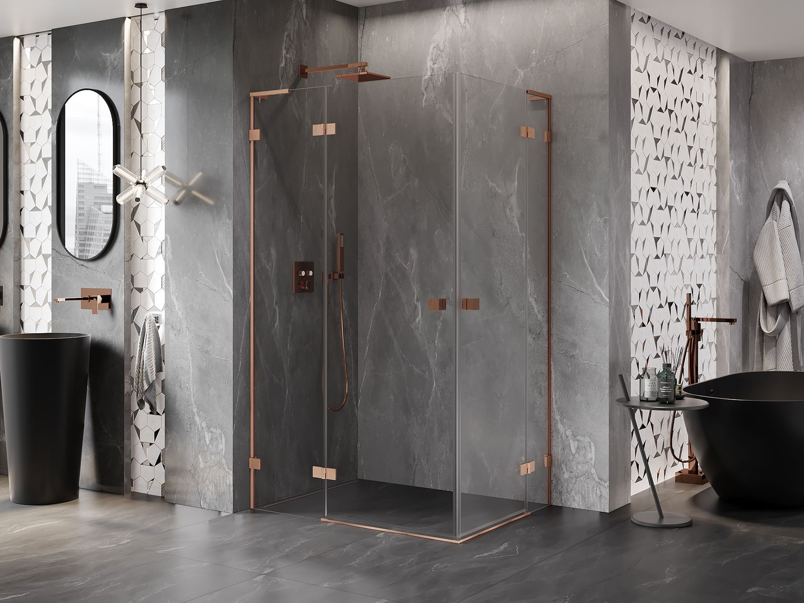 Mexen Lunar L Duo dušas kabīne ar kreiso vēršanu 90 x 80 cm, caurspīdīga, matēts varš - 834L-090L-080P-65-00