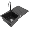 Mexen Cesar granitā izlietne ar vienu nodalījumu, noteku un virtuves krānu Telma, melna - 6514-77-670200-00