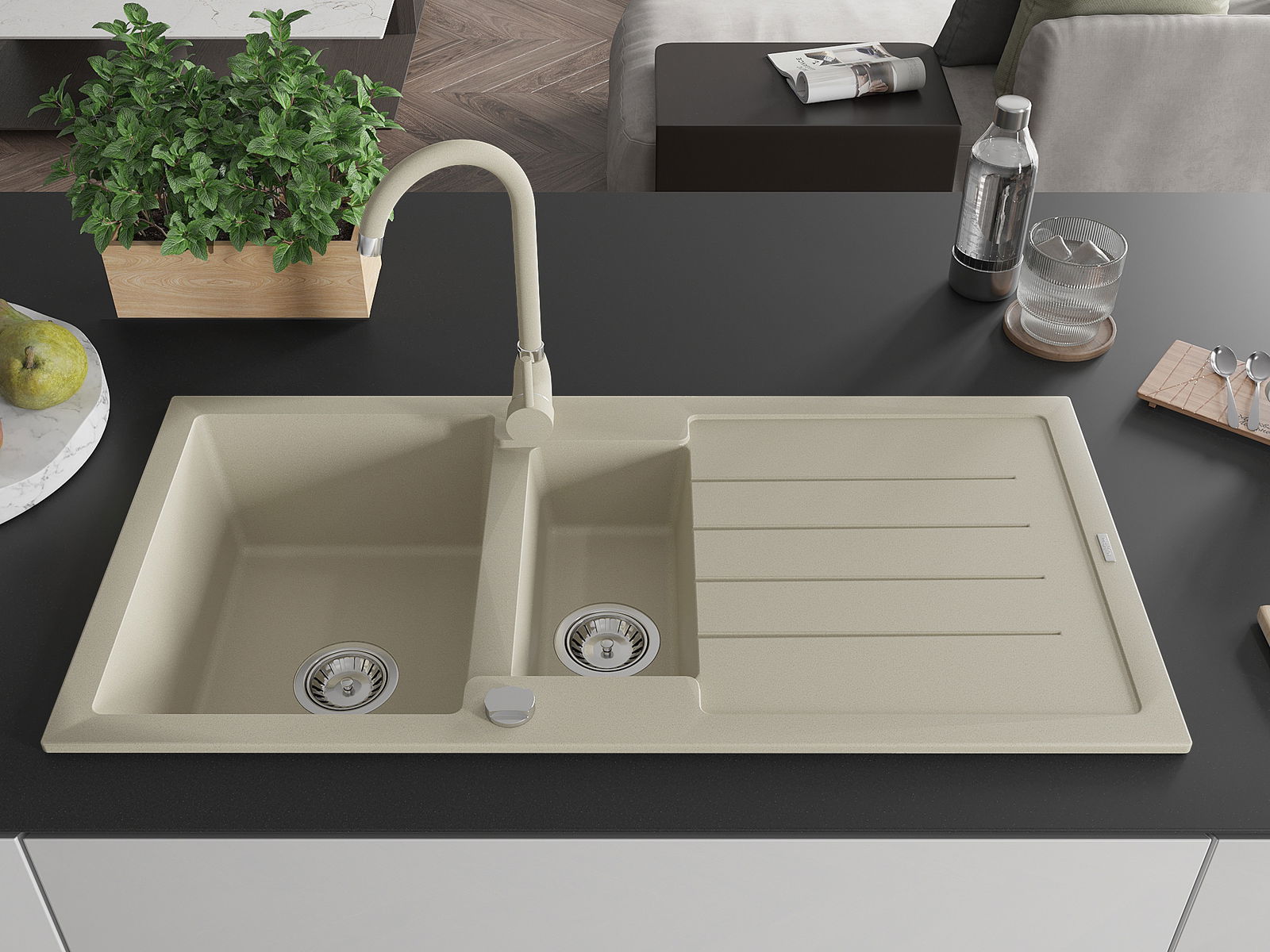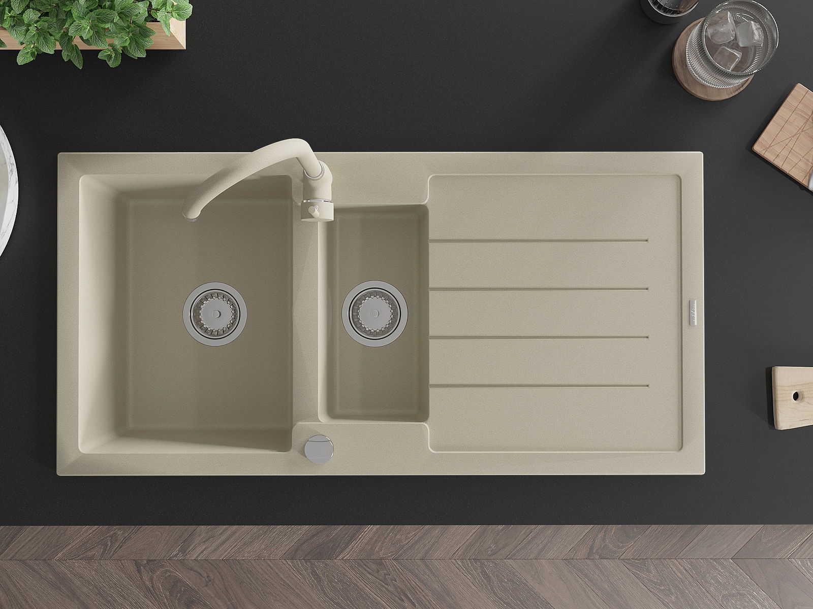 Mexen Andres granitizlietne ar 1,5 kamerām un noteces zonu un virtuves jaucējkrānu Telma, bēšs - 6515-69-670200-69
