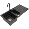 Mexen Andres granit izlietne ar 1,5 nodalījumu, ar noteces nodalījumu un virtuves jaucējkrānu Telma, pelēks - 6515-71-670200-71
