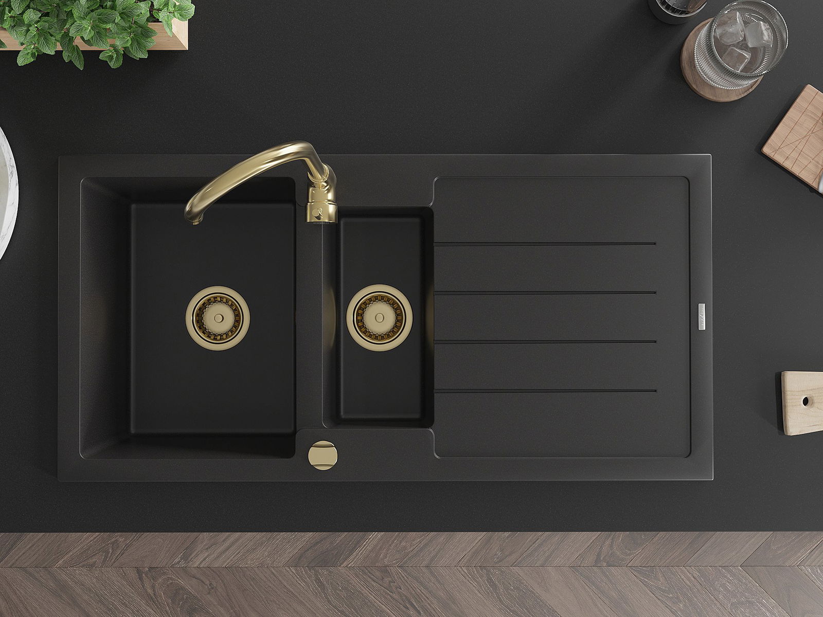 Mexen Andres granitizlietne 1,5-nodal, ar nožāvētāju un virtuves javu Telma, melns - 6515-77-670200-50