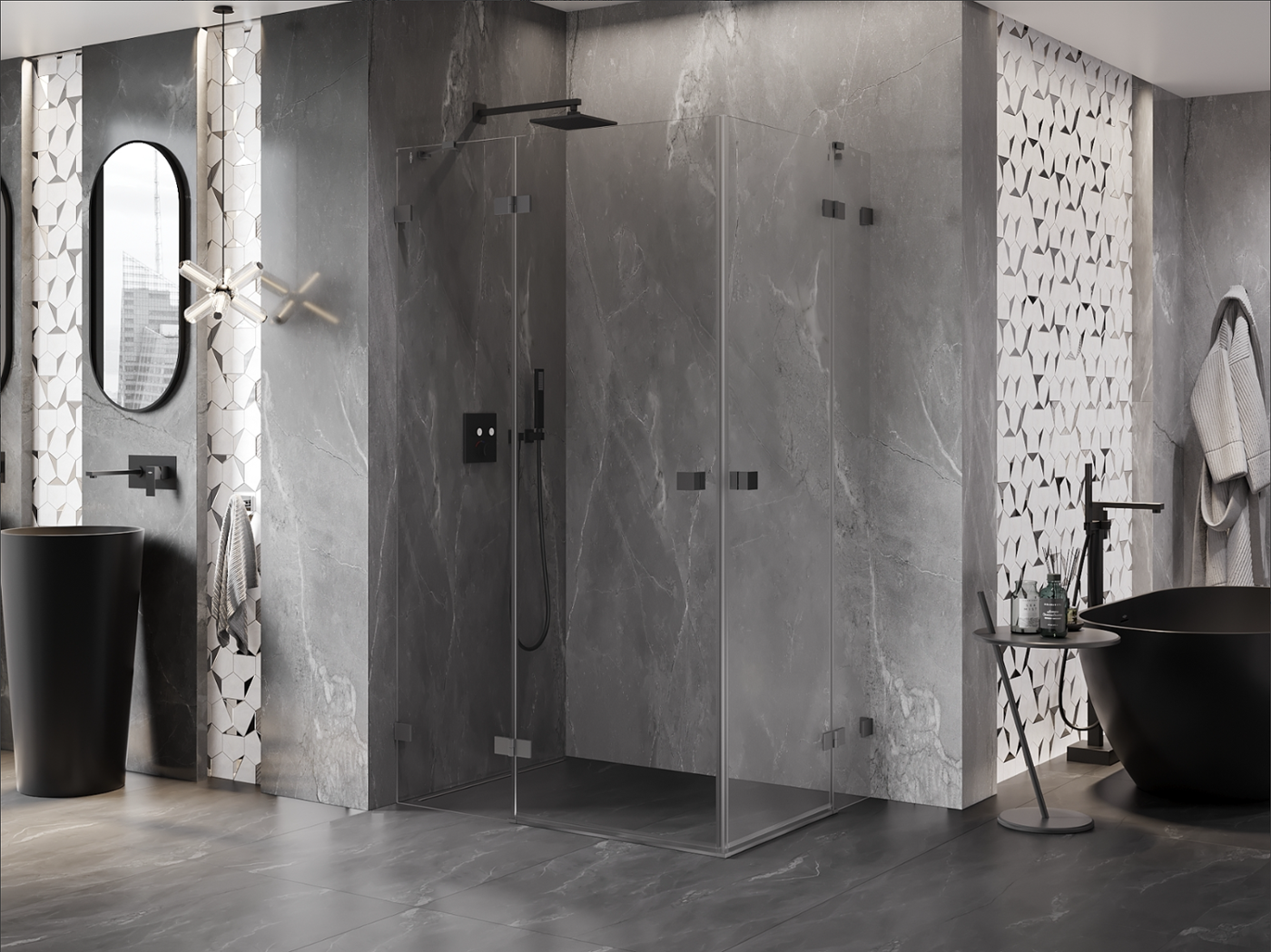 Skavas un eņģes ir izgatavotas no ļoti izturīga misiņa un papildus veido vienā līmenī esošu stikla virsmu. Tas ir lieliska izvēle, kas apvieno eleganci, izturību un modernu dizainu. Šādi risinājumi paaugstina dušas estētiku un vienlaikus atvieglo tīrības uzturēšanu.