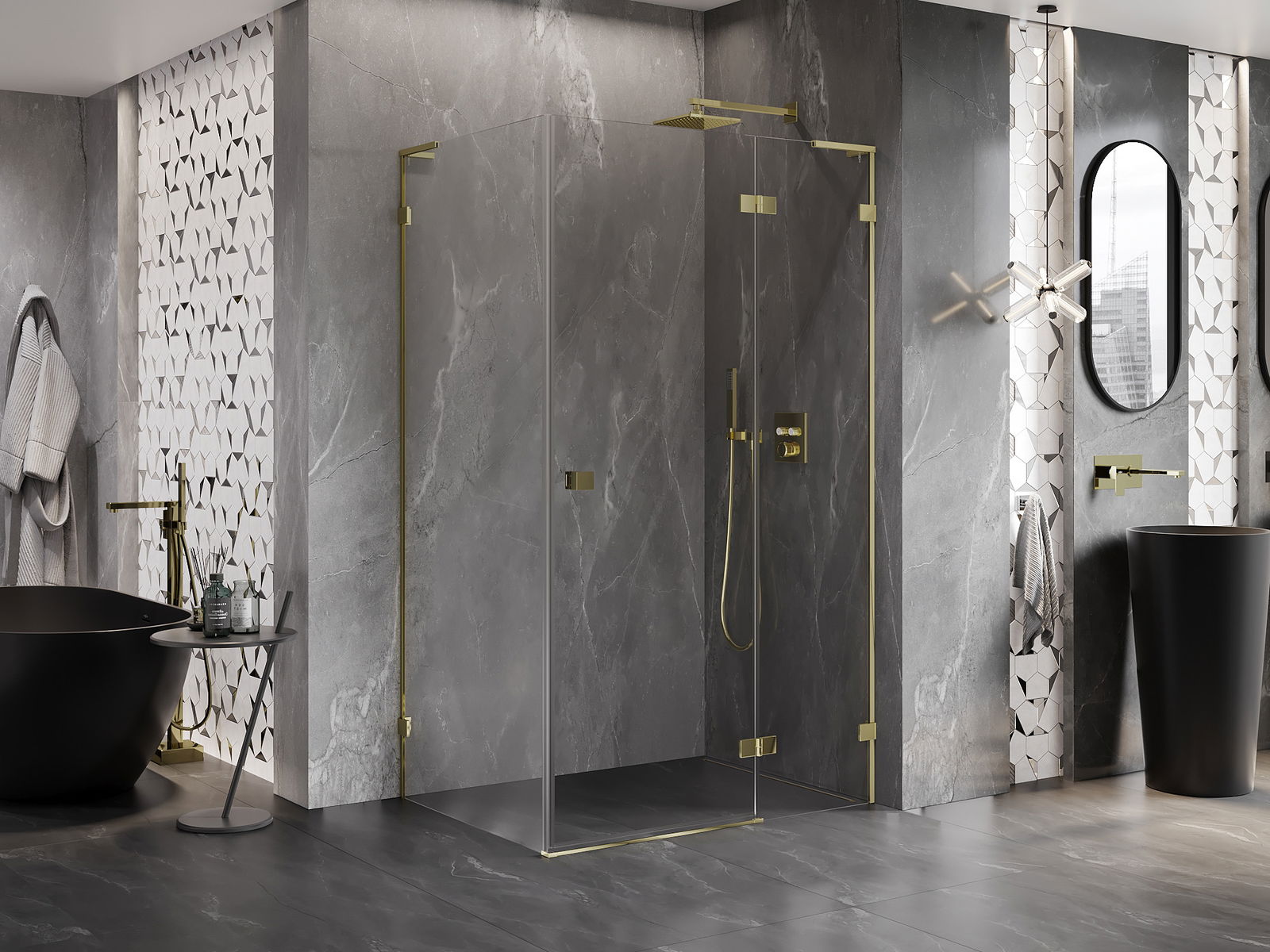 Mexen Lunar L duša kabīne atverama labā, 100 x 80 cm, caurspīdīga, zelta - 834L-100-080-50-00-P
