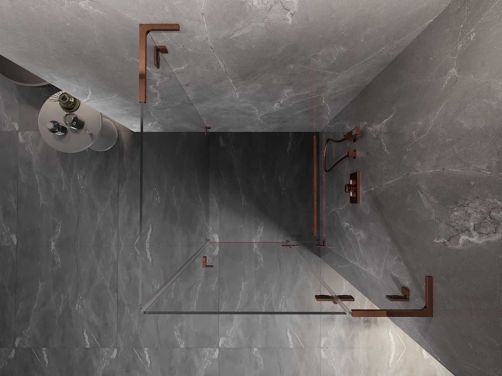 Mexen Lunar L atverama dušas kabīne, labā 90 x 90 cm, caurspīdīga, rozā zelts - 834L-090-090-60-00-P