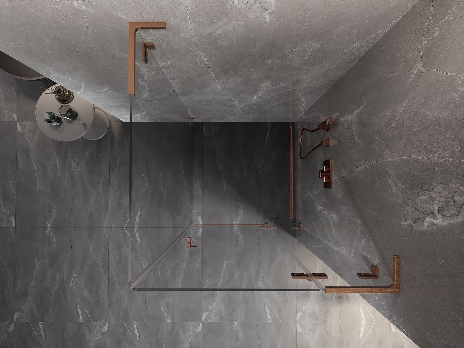 Mexen Lunar L dušas kabīne atverama, labā, 100 x 100 cm, caurspīdīga, matēts varš - 834L-100-100-65-00-P