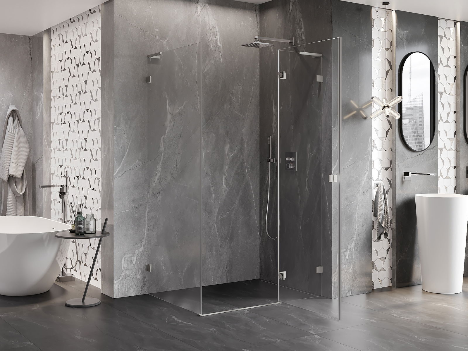 Skavas un eņģes ir izgatavotas no ļoti izturīga misiņa un papildus veido vienā līmenī esošu stikla virsmu. Tas ir lieliska izvēle, kas apvieno eleganci, izturību un modernu dizainu. Šādi risinājumi paaugstina dušas estētiku un vienlaikus atvieglo tīrības uzturēšanu.
