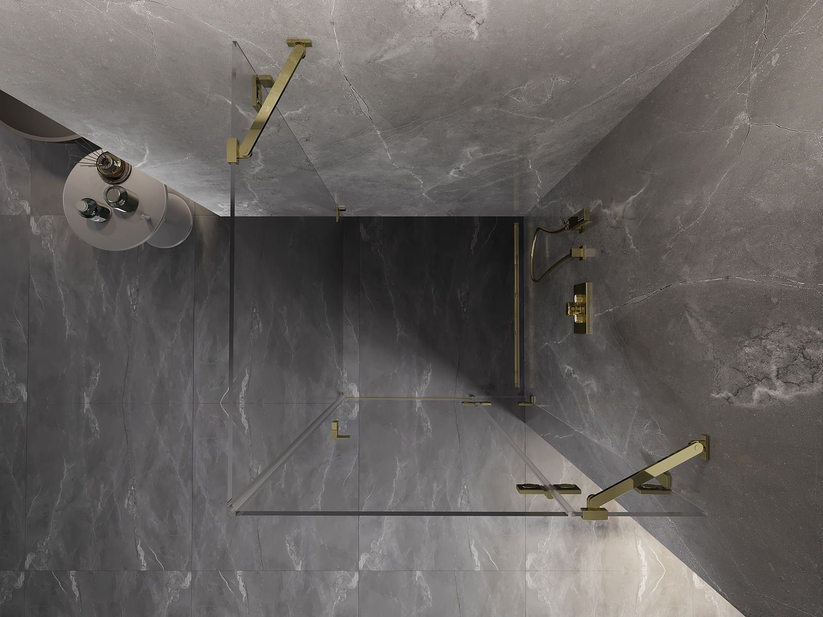 Skavas un eņģes ir izgatavotas no ļoti izturīga misiņa un papildus veido vienā līmenī esošu stikla virsmu. Tas ir lieliska izvēle, kas apvieno eleganci, izturību un modernu dizainu. Šādi risinājumi paaugstina dušas estētiku un vienlaikus atvieglo tīrības uzturēšanu.