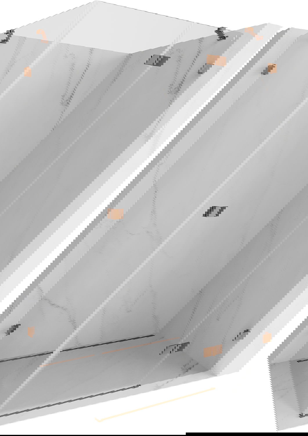Skavas un eņģes ir izgatavotas no ļoti izturīga misiņa un papildus veido vienā līmenī esošu stikla virsmu. Tas ir lieliska izvēle, kas apvieno eleganci, izturību un modernu dizainu. Šādi risinājumi paaugstina dušas estētiku un vienlaikus atvieglo tīrības uzturēšanu.