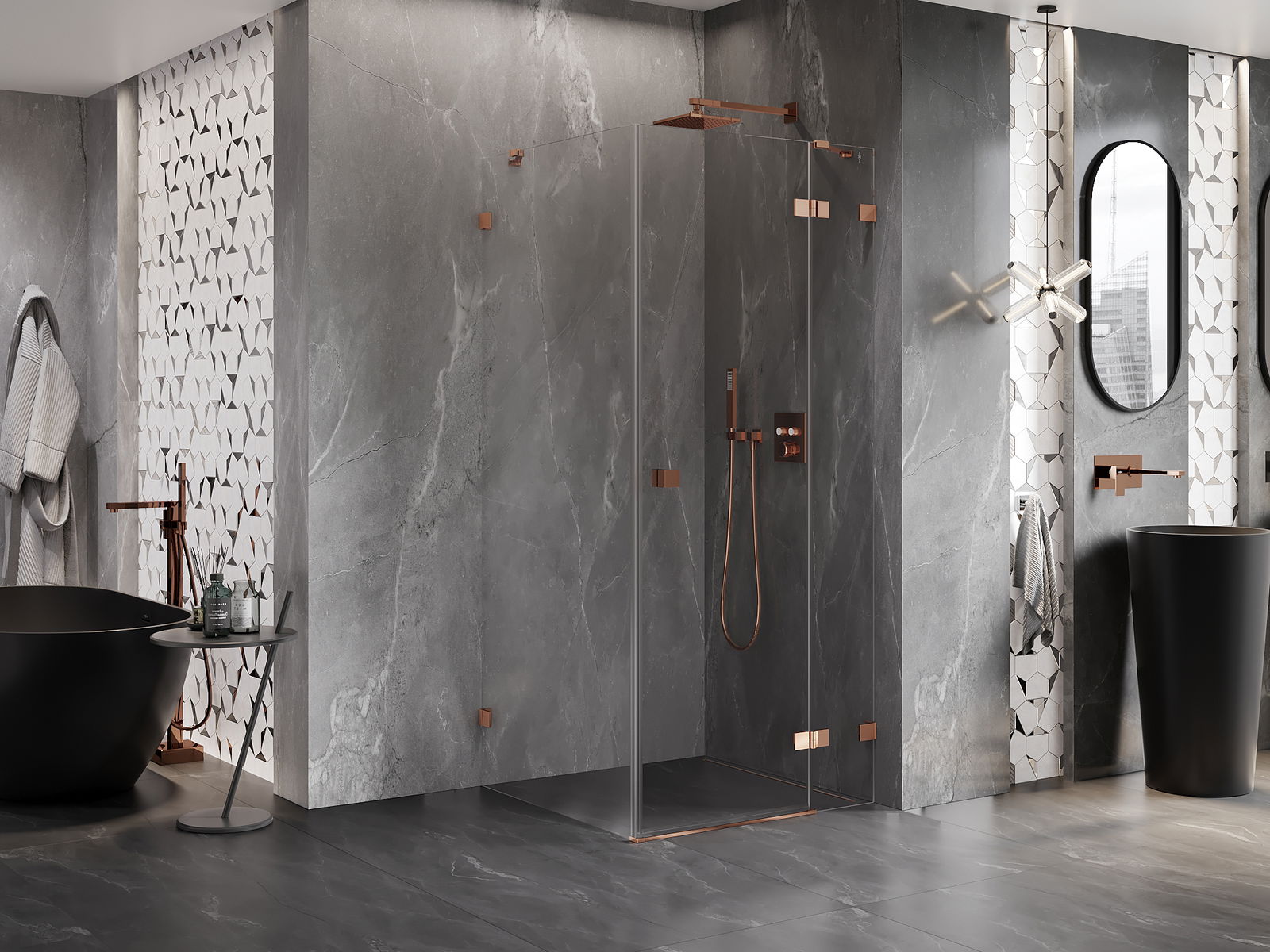 Mexen Lunar duša kabīne ar eņģēm, labā 100 x 100 cm, caurspīdīga, rozā zelts - 834-100-100-60-00-P