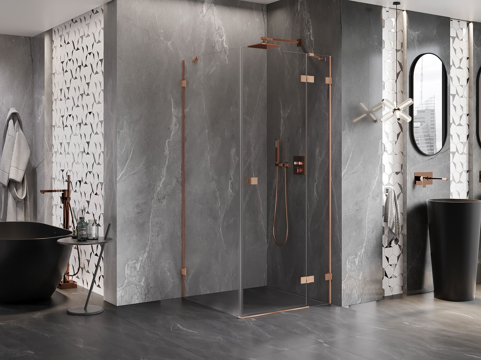 Mexen Lunar duša kabīne ar eņģu durvīm, labā puse 70 x 70 cm, caurspīdīga, matēta vara - 834-070-070-65-00-P