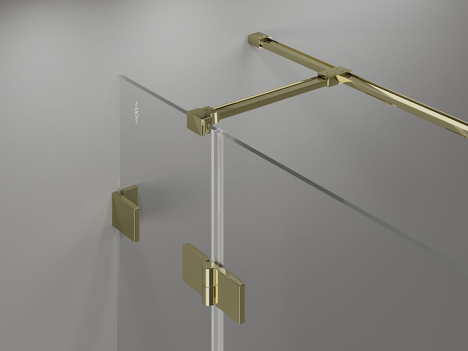 Skavas un eņģes ir izgatavotas no ļoti izturīga misiņa un papildus veido vienā līmenī esošu stikla virsmu. Tas ir lieliska izvēle, kas apvieno eleganci, izturību un modernu dizainu. Šādi risinājumi paaugstina dušas estētiku un vienlaikus atvieglo tīrības uzturēšanu.