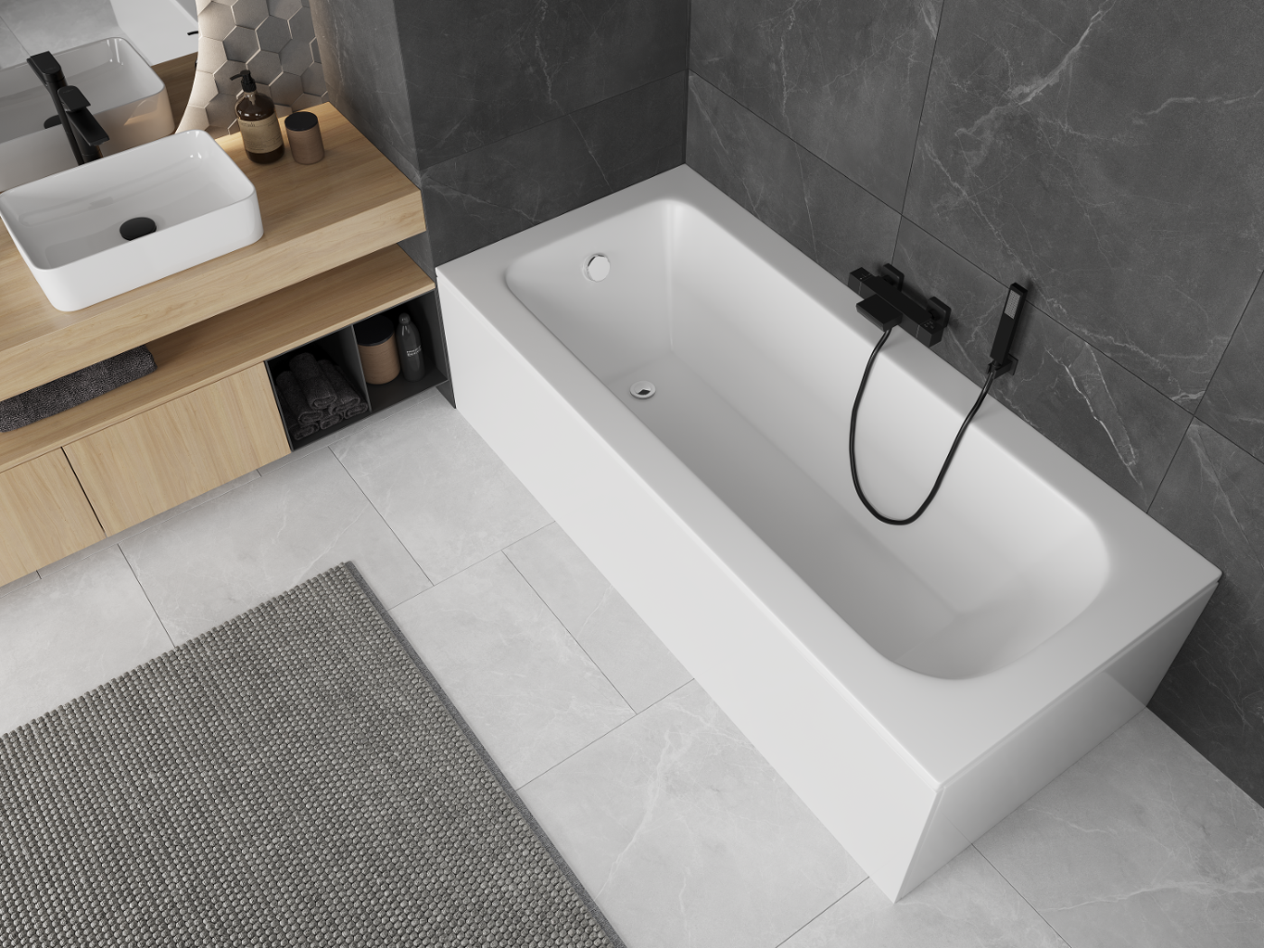 Komplektā ir iekļauts automātiskais vannas sifons. Tam ir grozāma roktura, ar kuru var atvērt vai aizvērt iztukšošanas vārstu, nesamitrinot rokas. Higiēnisks un drošs risinājums, kas nodrošina pilnīgu kontroli.