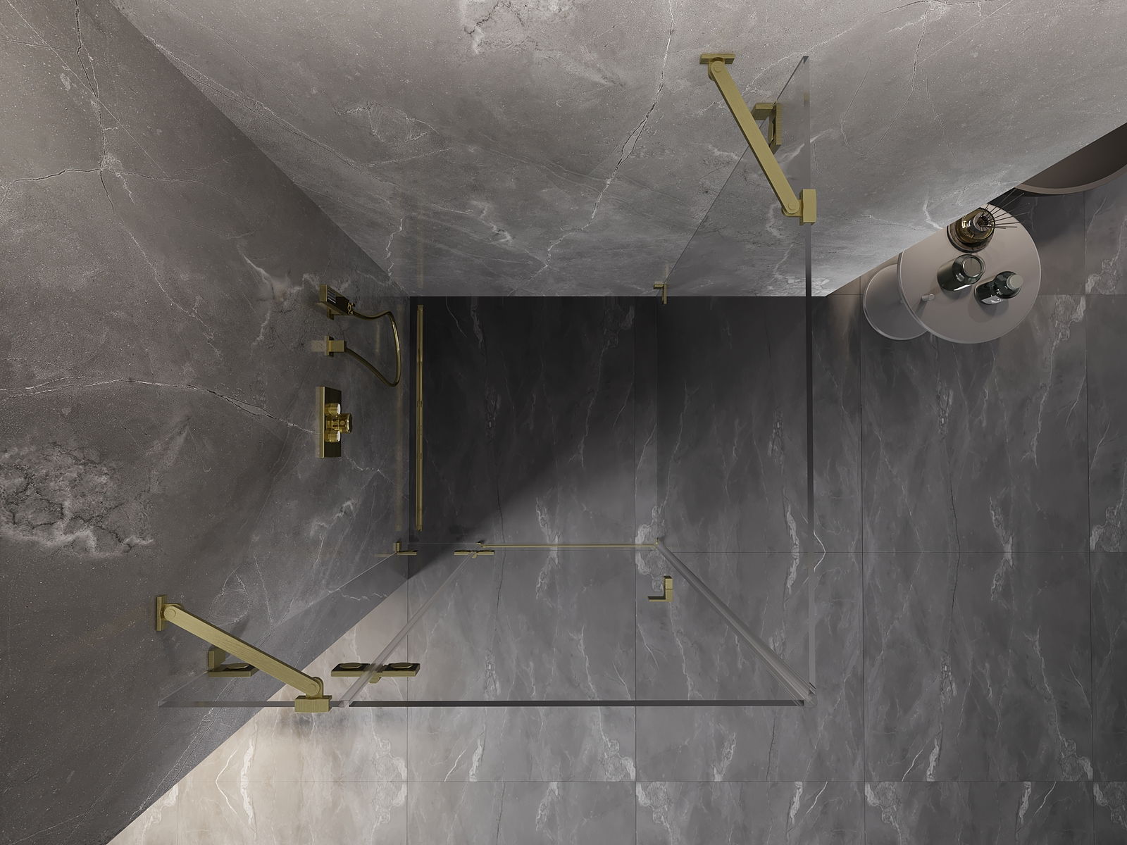 Mexen Lunar kreisā atveramā dušas kabīne 70 x 70 cm, caurspīdīga, zeltīti matēta - 834-070-070-55-00-L