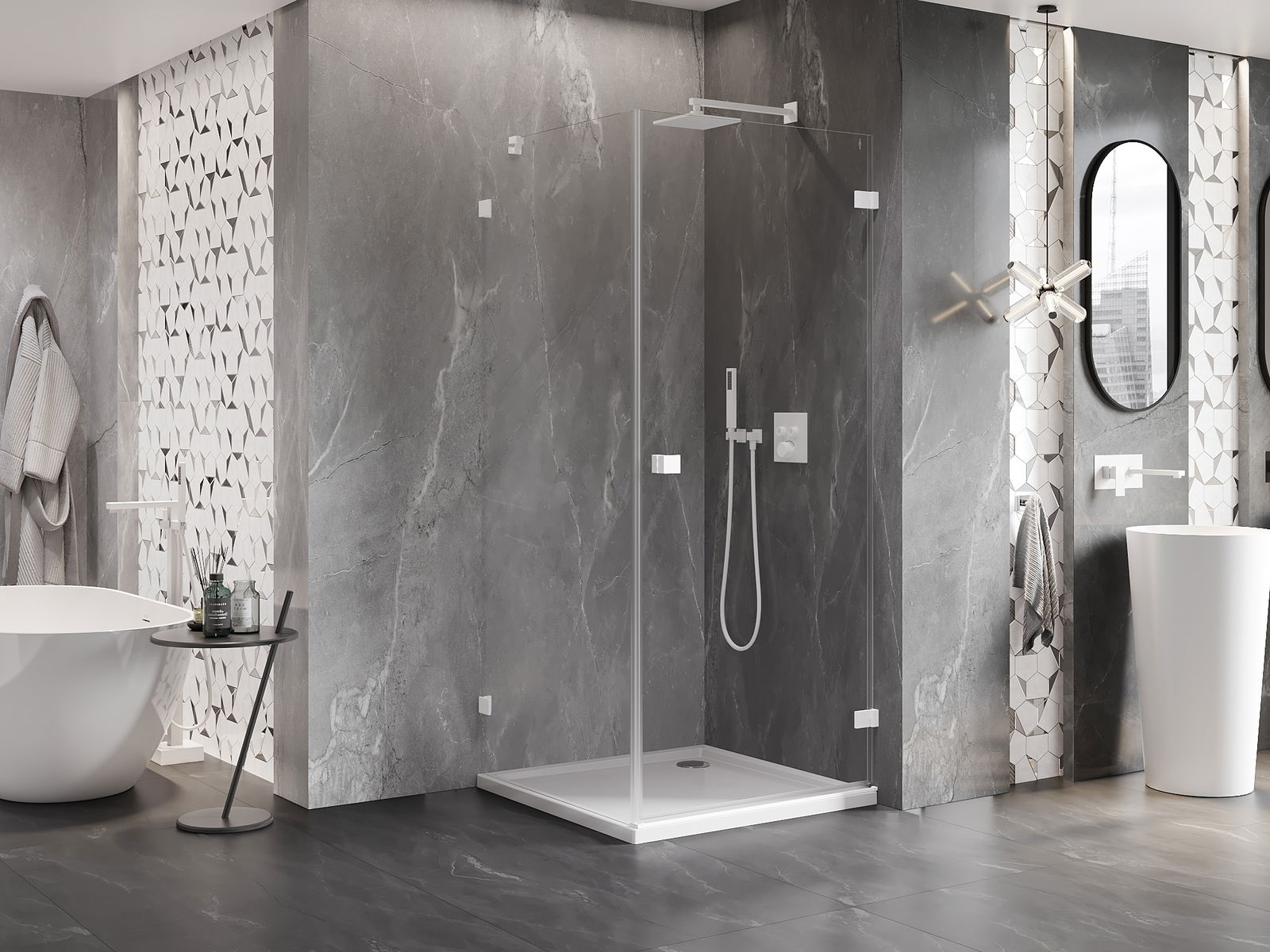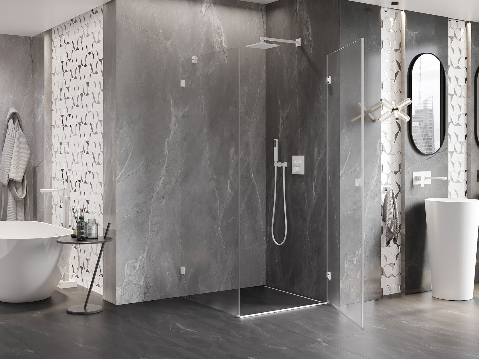 Produktu, atkarībā no vajadzībām, var uzstādīt gan uz dušas paliktņa, gan tieši uz grīdas. Universālā montāžas metode ļauj pielāgot produktu dažāda veida vannas istabām un telpas konfigurācijām.