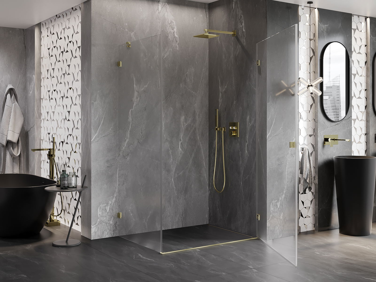 Stiprinājumi ir izgatavoti no ļoti izturīga misiņa, un tie veido ar stikla virsmu vienmērīgu plāksni. Tas ir lieliska izvēle, kas apvieno eleganci, izturību un modernu dizainu. Pateicoties šādiem risinājumiem, duša iegūst estētiku un tajā pašā laikā atvieglo tīrības uzturēšanu.