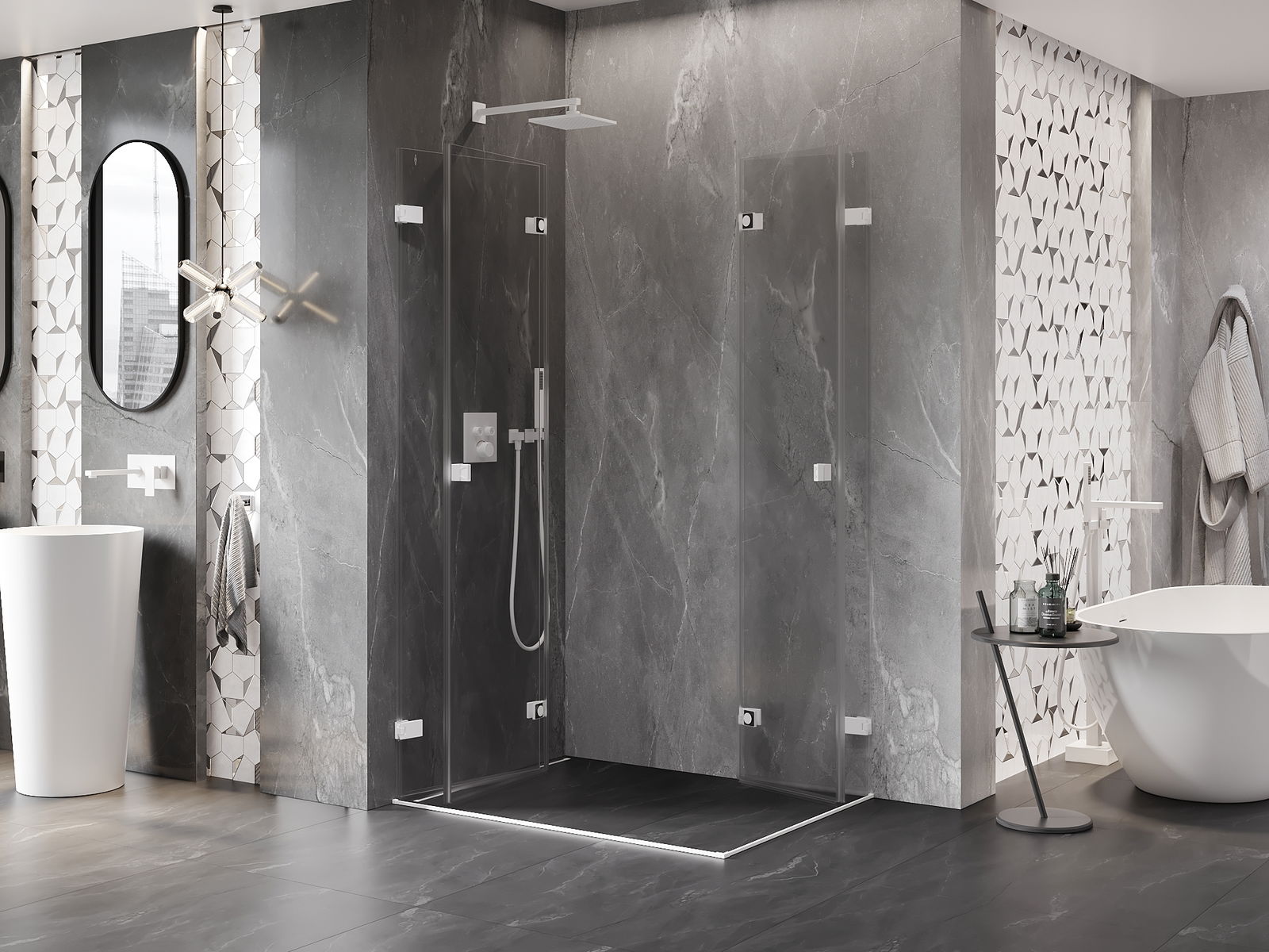 Iespēja salocīt durvis gan uz āru, gan uz iekšpusi, ļauj iegūt vairāk vietas, kad duša netiek izmantota. Tas ir ideāls risinājums mazākām vannas istabām, maksimāli izmantojot pieejamo telpu.