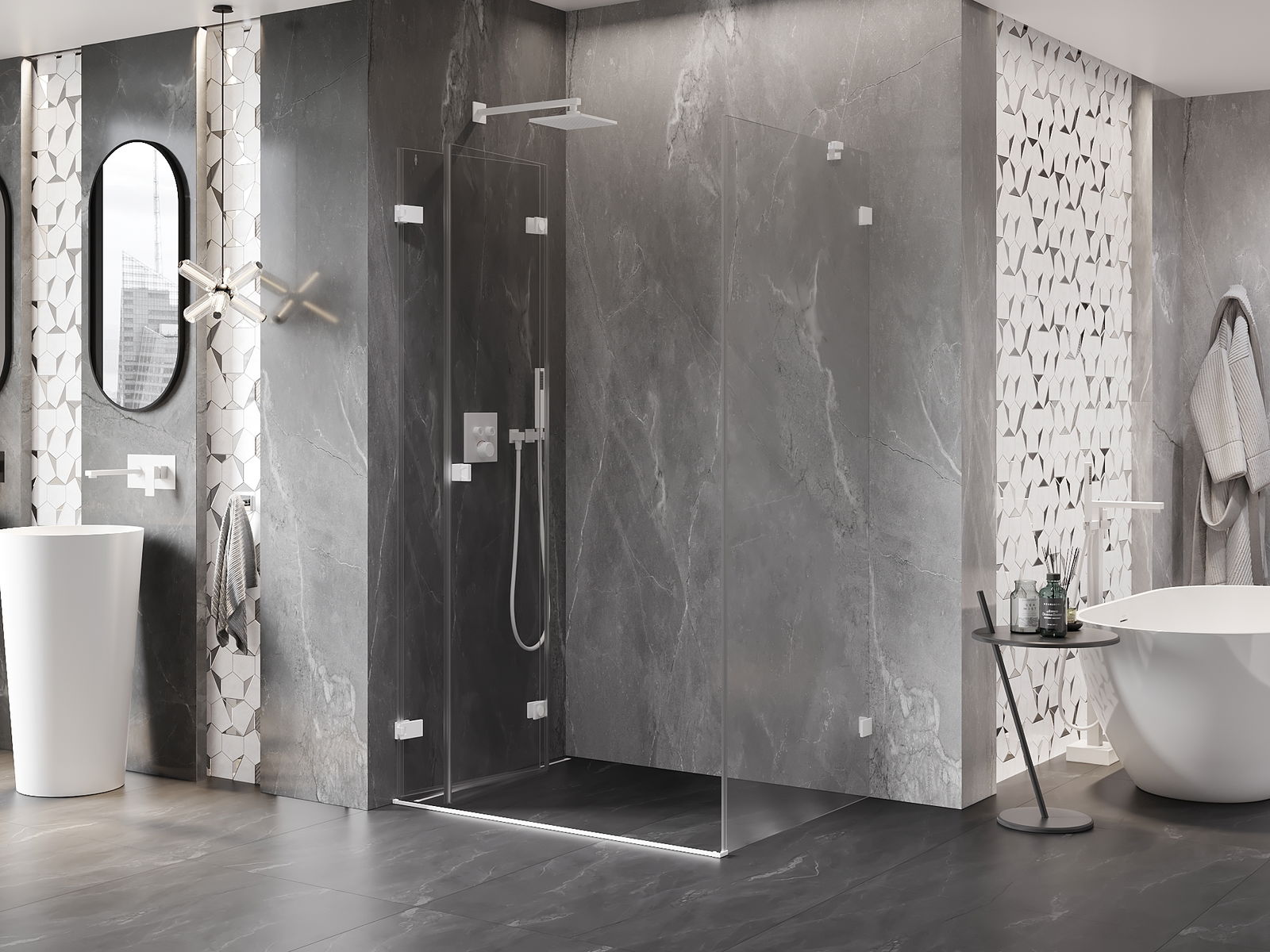 Iespēja salocīt durvis gan uz āru, gan uz iekšpusi, ļauj iegūt vairāk vietas, kad duša netiek izmantota. Tas ir ideāls risinājums mazākām vannas istabām, maksimāli izmantojot pieejamo telpu.