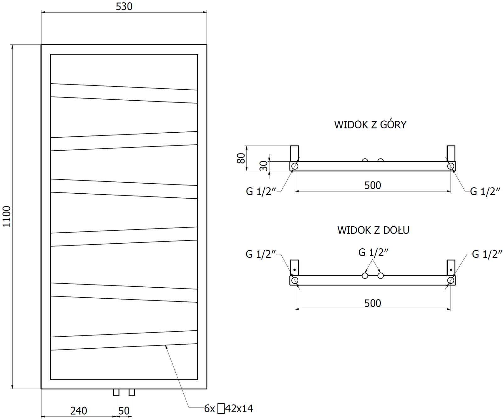 - 4xG ½″ no augšas un apakšas labajā vai kreisajā pusē