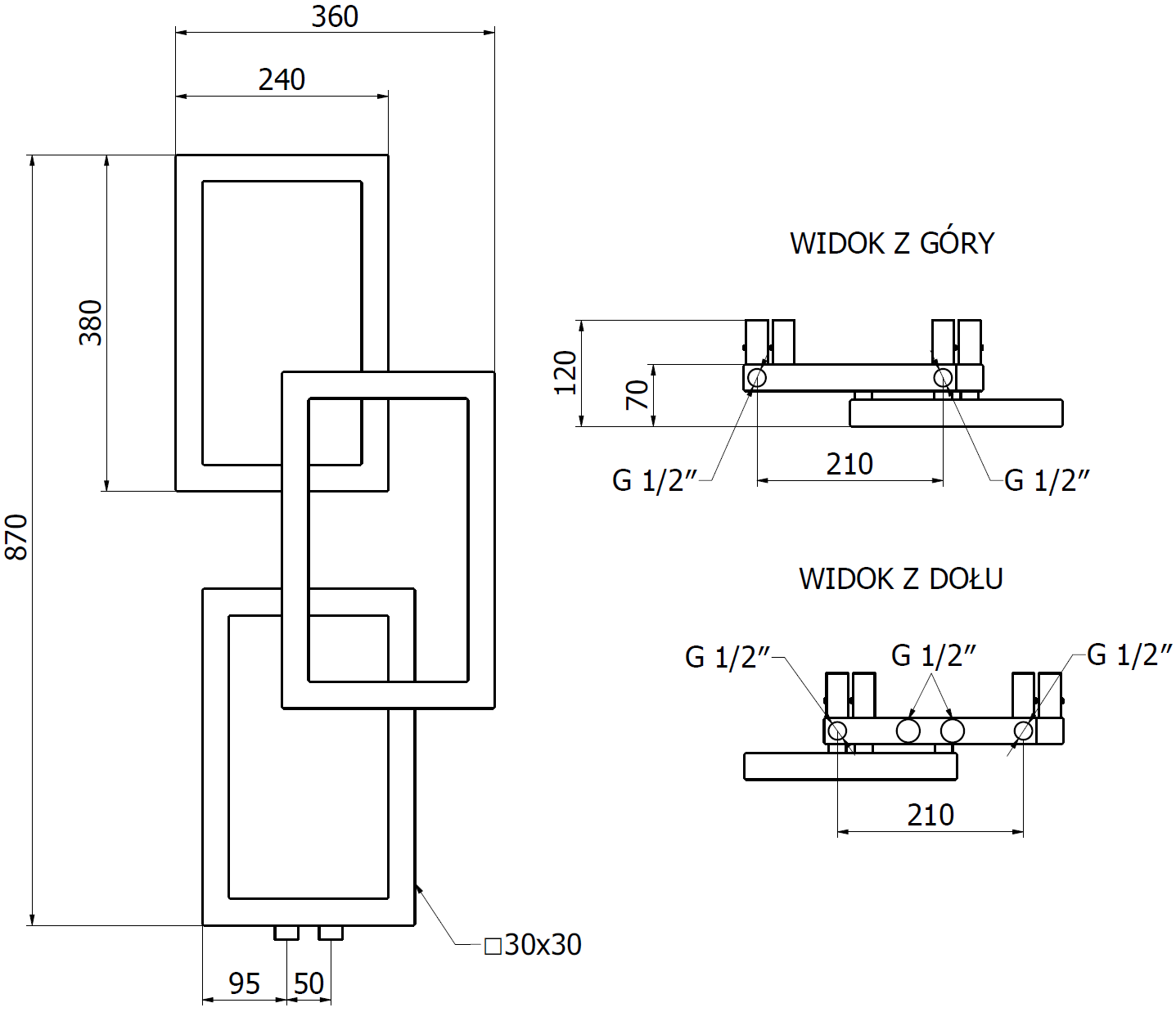 - 4xG ½″ no augšas un apakšas pa labi vai pa kreisi