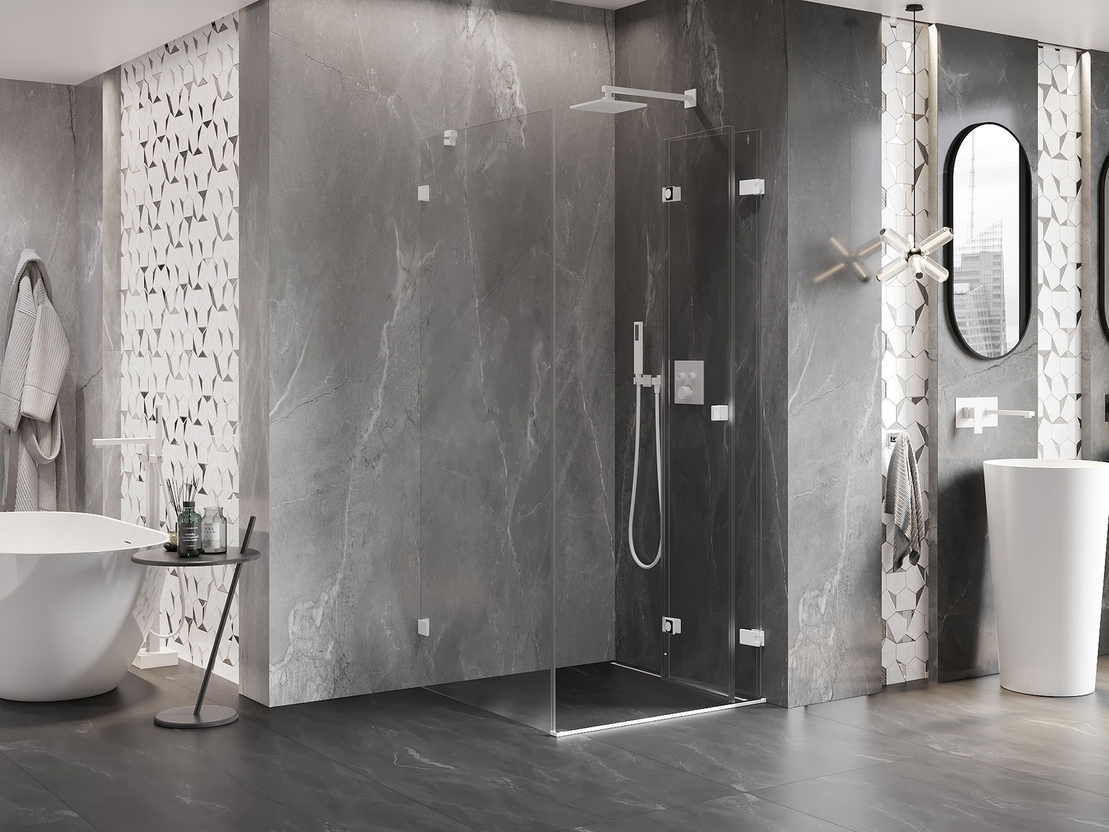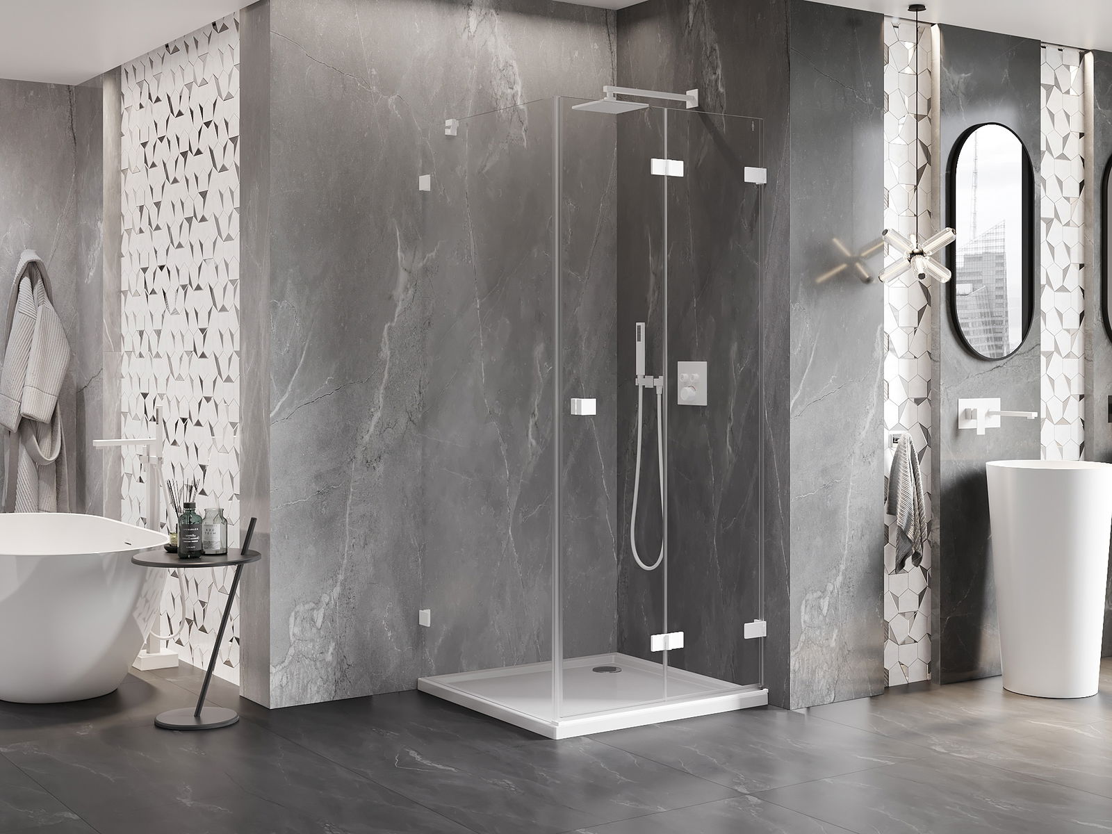 Iespēja salocīt durvis gan uz āru, gan uz iekšpusi, ļauj iegūt vairāk vietas, kad duša netiek izmantota. Tas ir ideāls risinājums mazākām vannas istabām, maksimāli izmantojot pieejamo telpu.