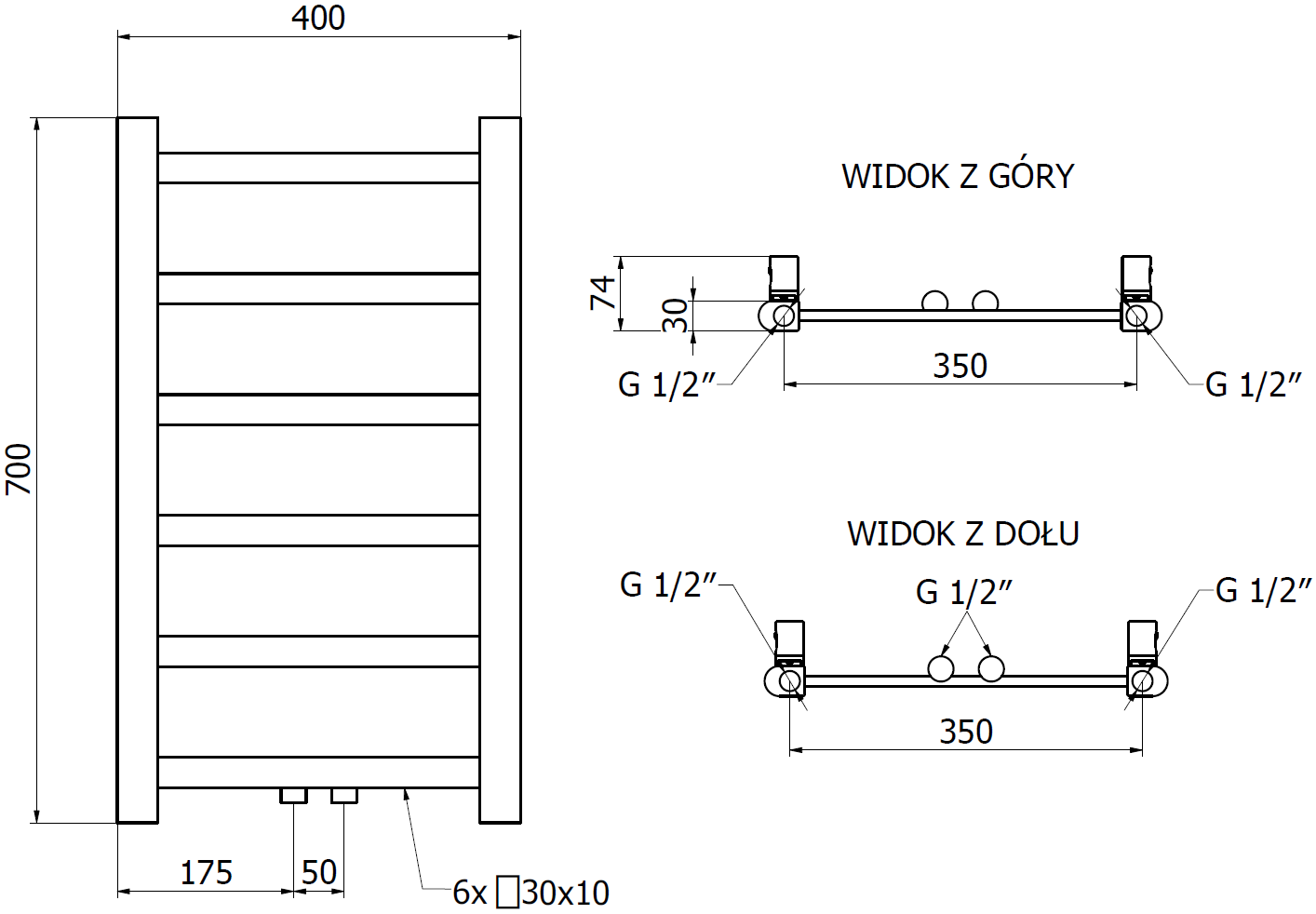 - 4xG ½″ no augšas un apakšas no labās vai kreisās puses