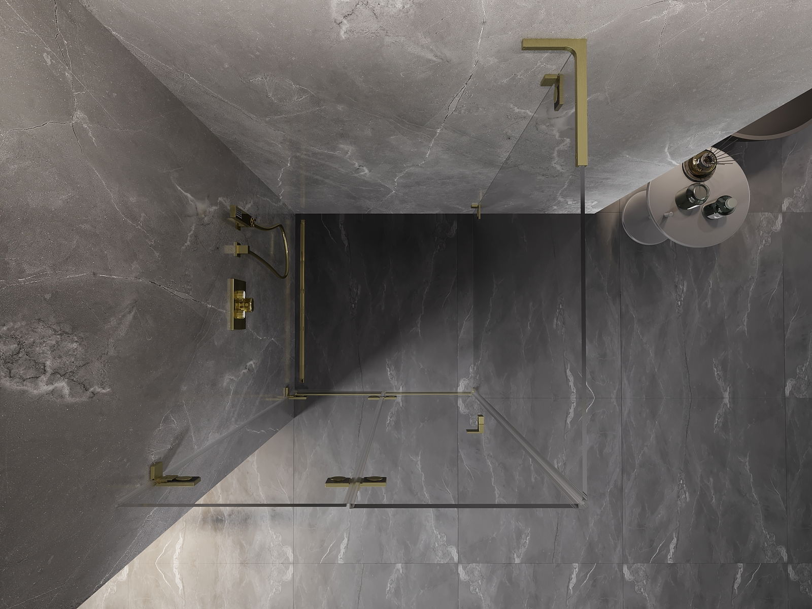 Skavas un eņģes ir izgatavotas no ļoti izturīga misiņa un papildus veido vienā līmenī esošu stikla virsmu. Tas ir lieliska izvēle, kas apvieno eleganci, izturību un modernu dizainu. Šādi risinājumi paaugstina dušas estētiku un vienlaikus atvieglo tīrības uzturēšanu.
