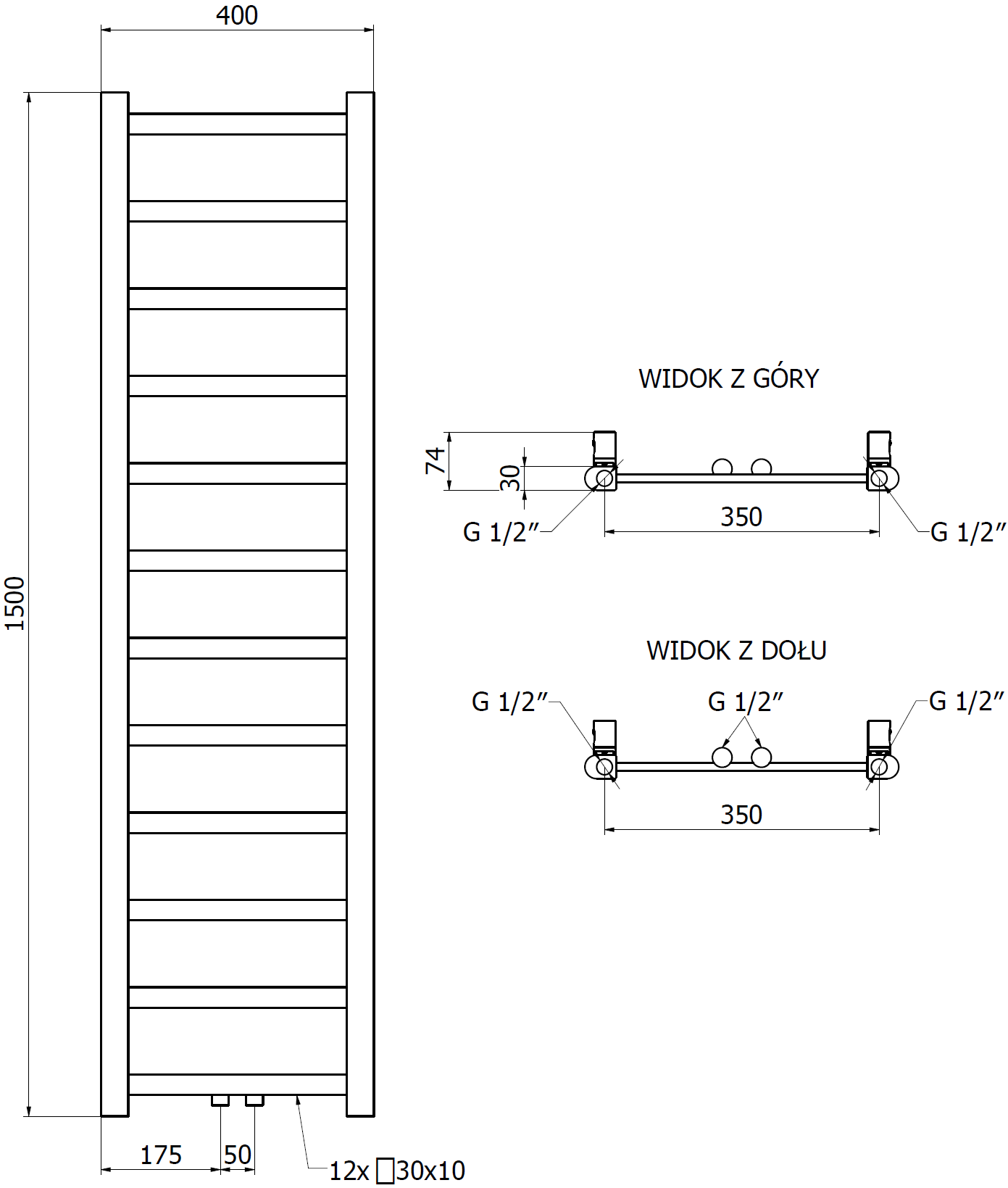 - 4xG ½″ no augšas un apakšas no labās vai kreisās puses