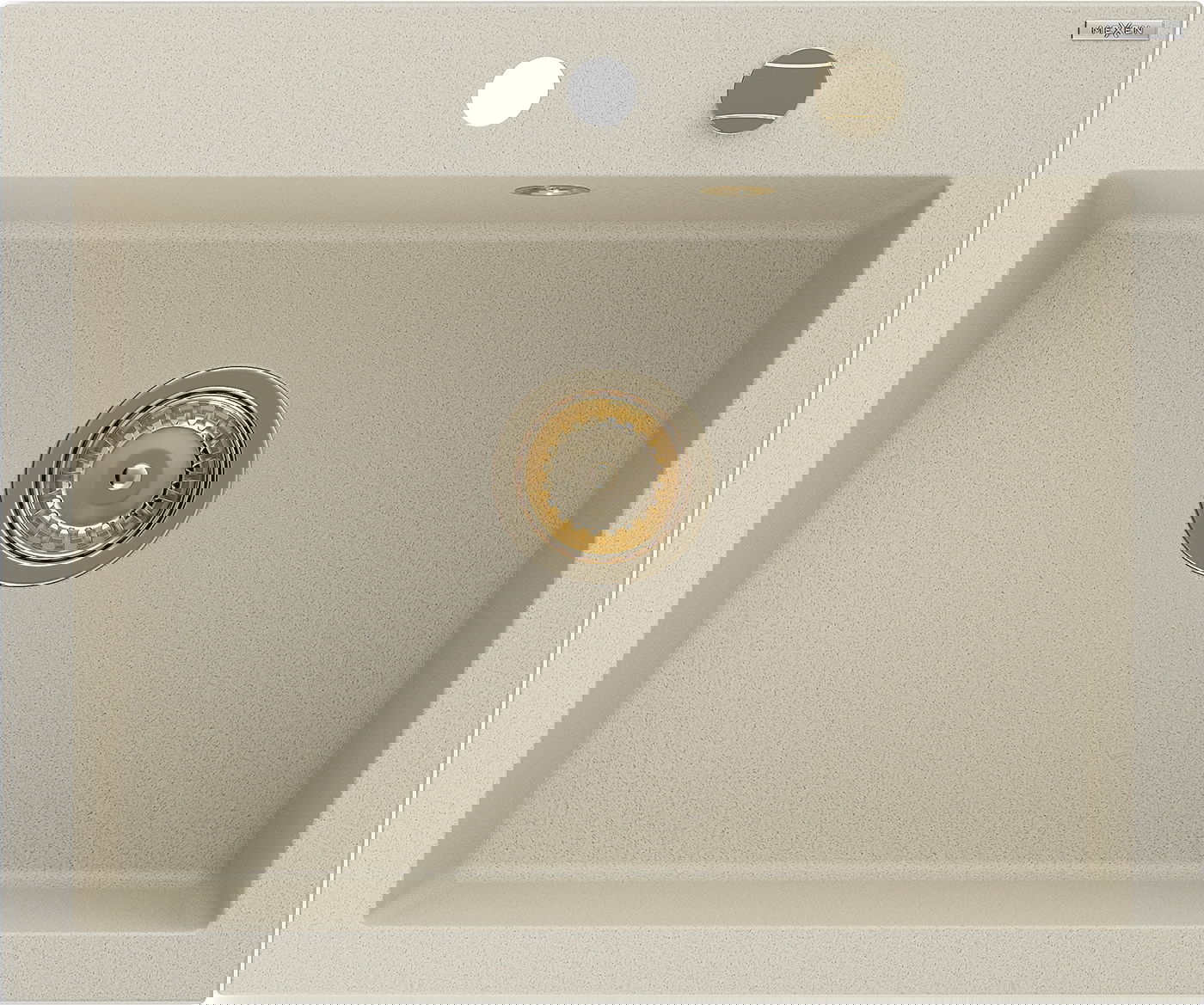 Izlietnei ir padziļināts caurums ar diametru 35 mm, kuru varat izsist patstāvīgi. To var izmantot, piemēram, šķidruma dozatora uzstādīšanai, kas novērsīs plastmasas pudeļu klātbūtni virtuvē un piešķirs tai elegantu apdari.