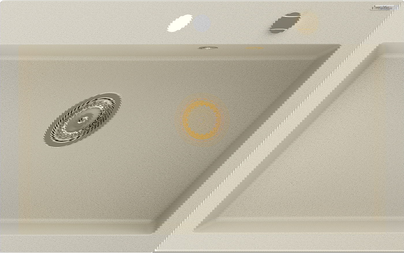 Izlietnei ir padziļināts caurums ar diametru 35 mm, kuru varat izsist patstāvīgi. To var izmantot, piemēram, šķidruma dozatora uzstādīšanai, kas novērsīs plastmasas pudeļu klātbūtni virtuvē un piešķirs tai elegantu apdari.
