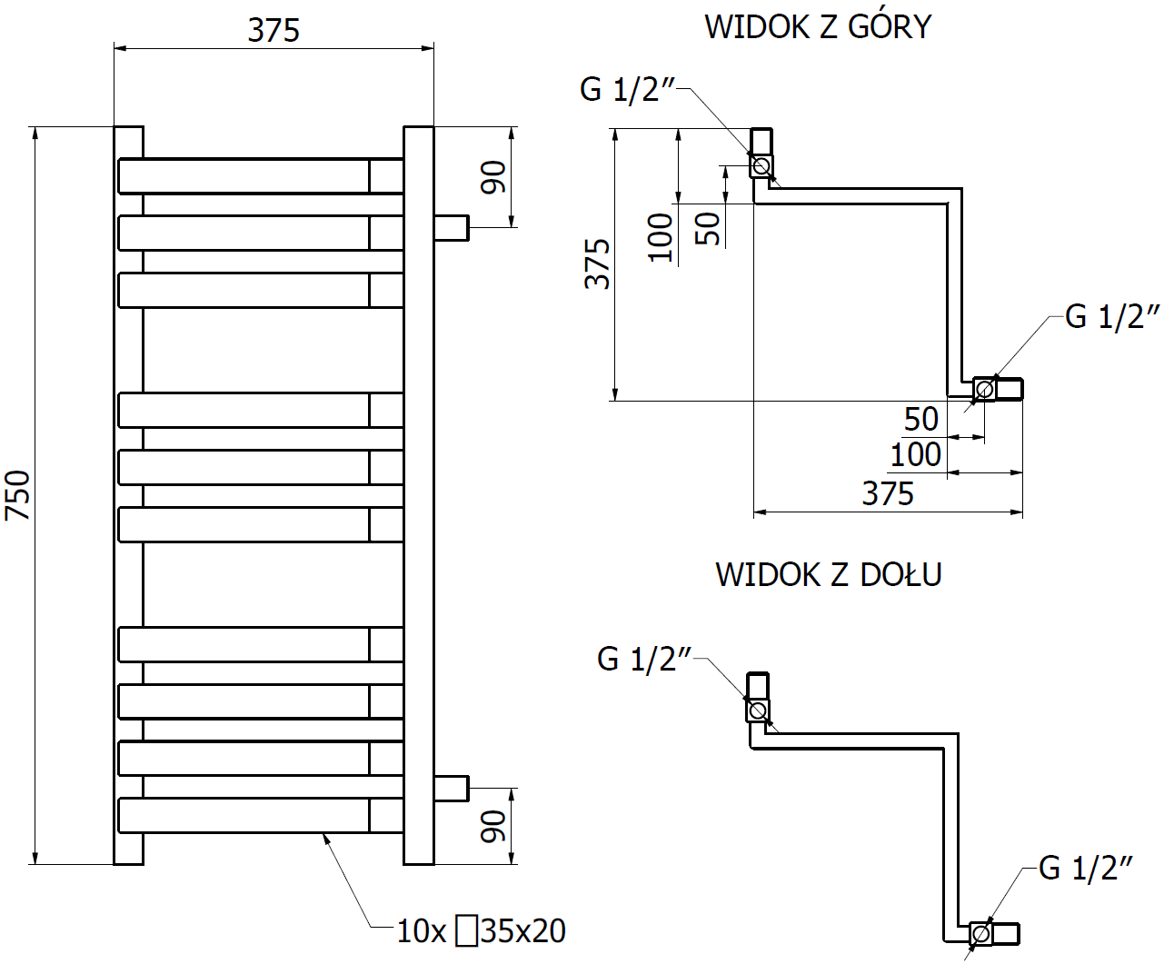 - 4xG ½” no augšas vai apakšas no labās vai kreisās puses