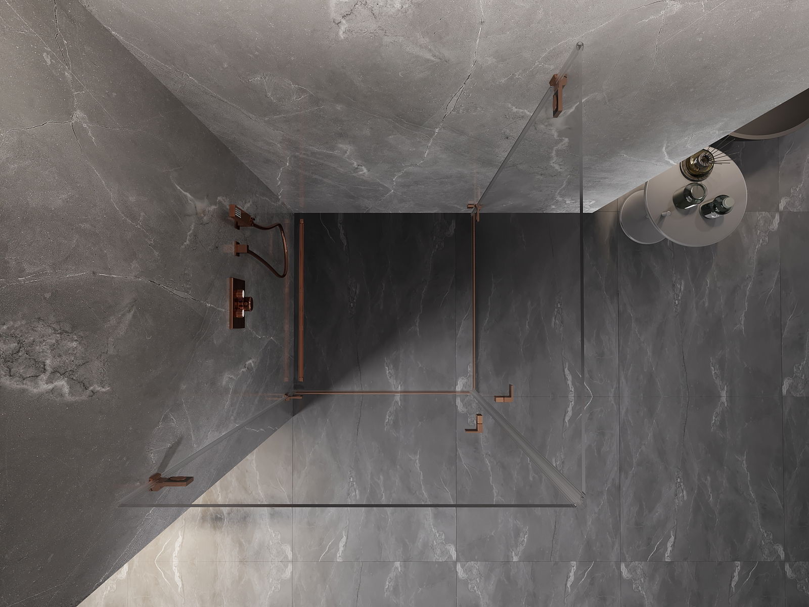 Mexen Lunar-B Duo dušas kabīne ar eņģēm 70 x 70 cm, caurspīdīga, matēts varš - 832-070L-070P-65-00