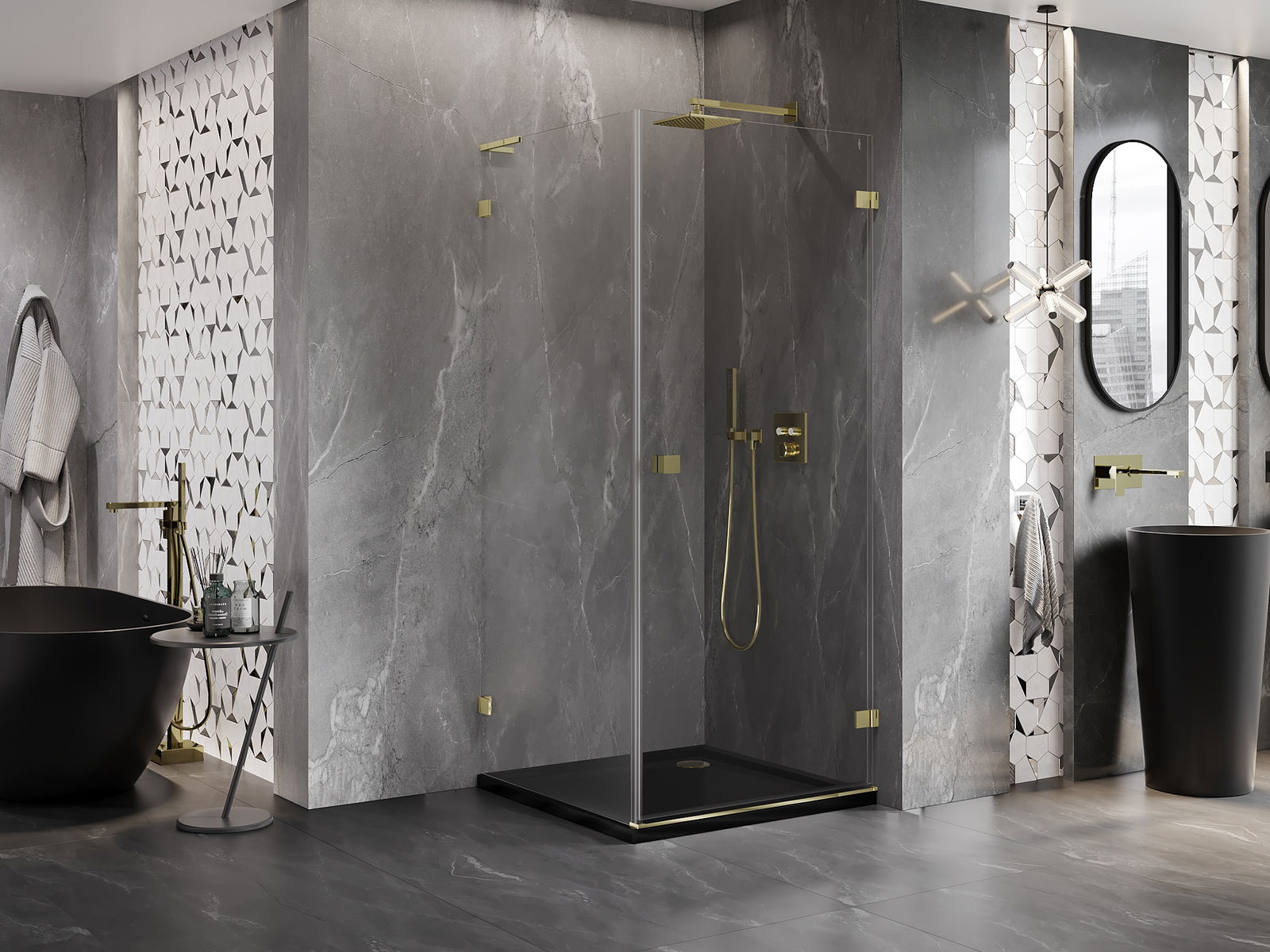 Stiprinājumi ir izgatavoti no ļoti izturīga misiņa, un tie veido ar stikla virsmu vienmērīgu plāksni. Tas ir lieliska izvēle, kas apvieno eleganci, izturību un modernu dizainu. Pateicoties šādiem risinājumiem, duša iegūst estētiku un tajā pašā laikā atvieglo tīrības uzturēšanu.