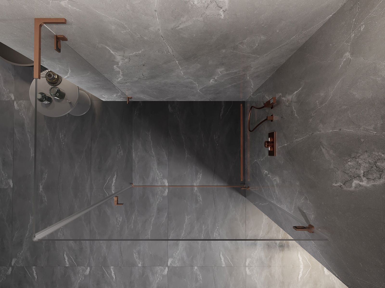 Mexen Lunar-B L nolokāma dušas kabīne labā 85 x 70 cm, caurspīdīga, matēta vara - 832L-085-070-65-00-P