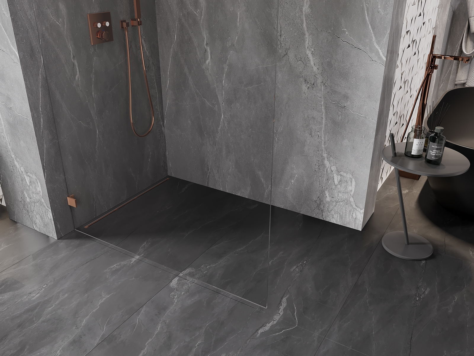 Mexen Lunar L Dušas siena Walk-in kreisā 100 x 200 cm, caurspīdīga 8 mm, matēts varš - 830L-100-000-65-00-L