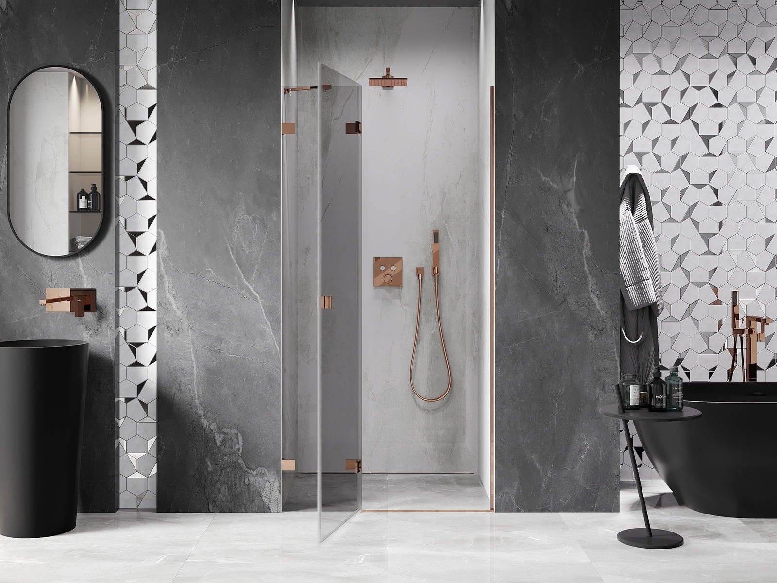 Mexen Lunar kreisās puses veramās dušas durvis 90 cm, caurspīdīgas, rozā zelts - 834-090-000-60-00-L