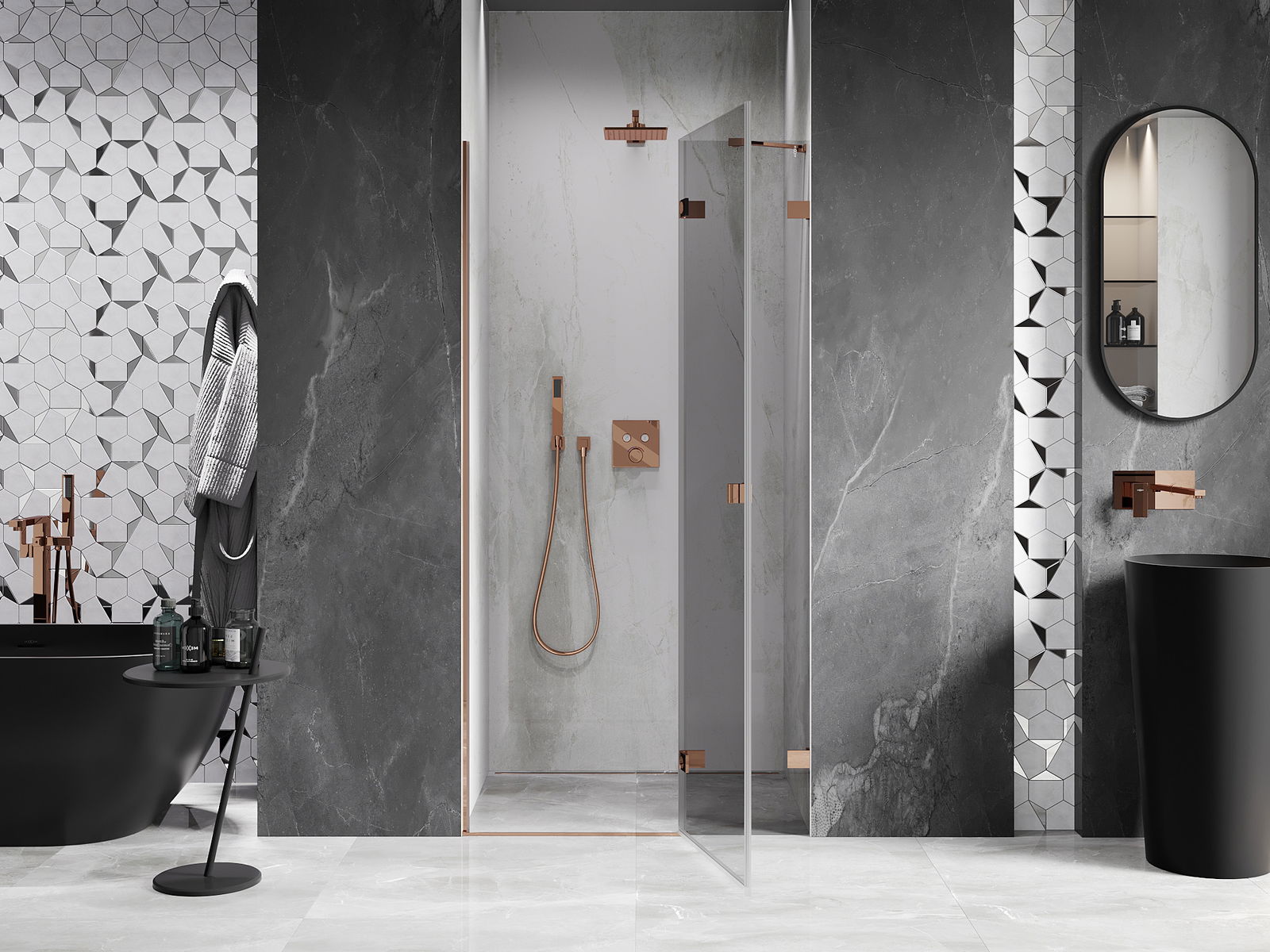 Mexen Lunar labās puses veramas dušas durvis 95 cm, caurspīdīgas, rozā zelts - 834-095-000-60-00-P