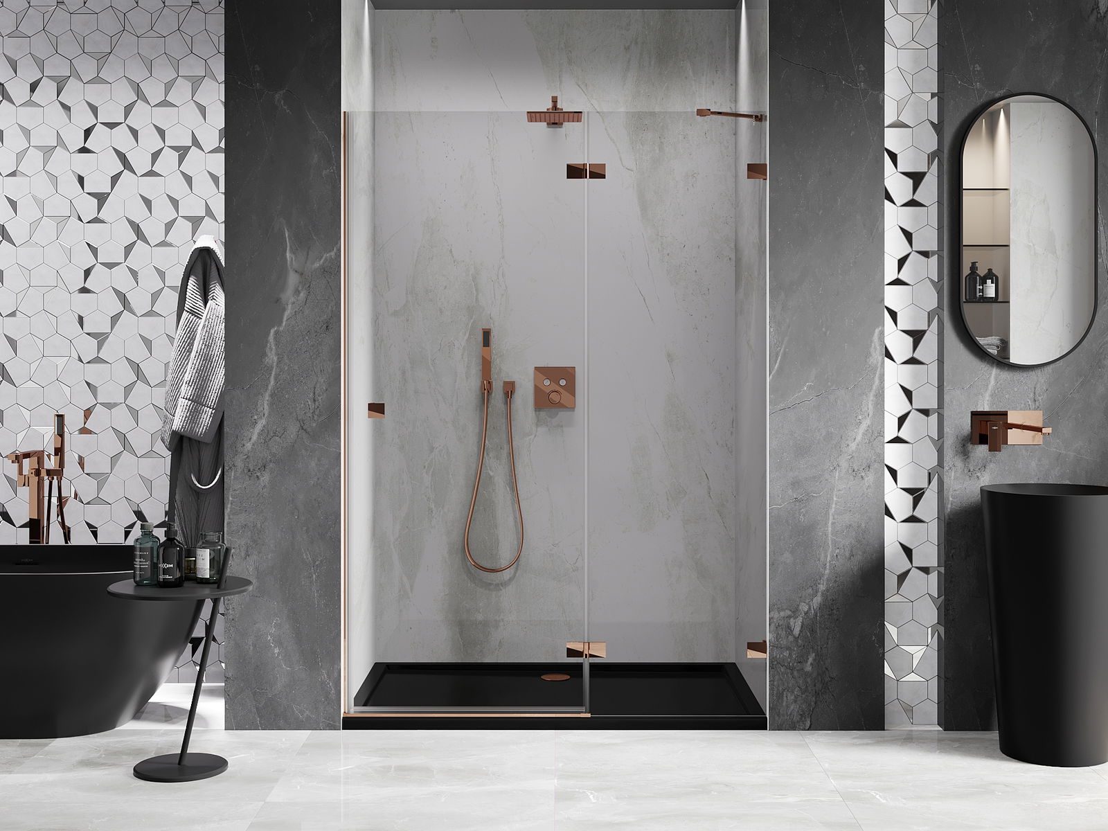 Mexen Lunar dušas durvis, kas atveras pa labi, 135 cm, caurspīdīgas, rozā zelts - 834-135-000-60-00-P