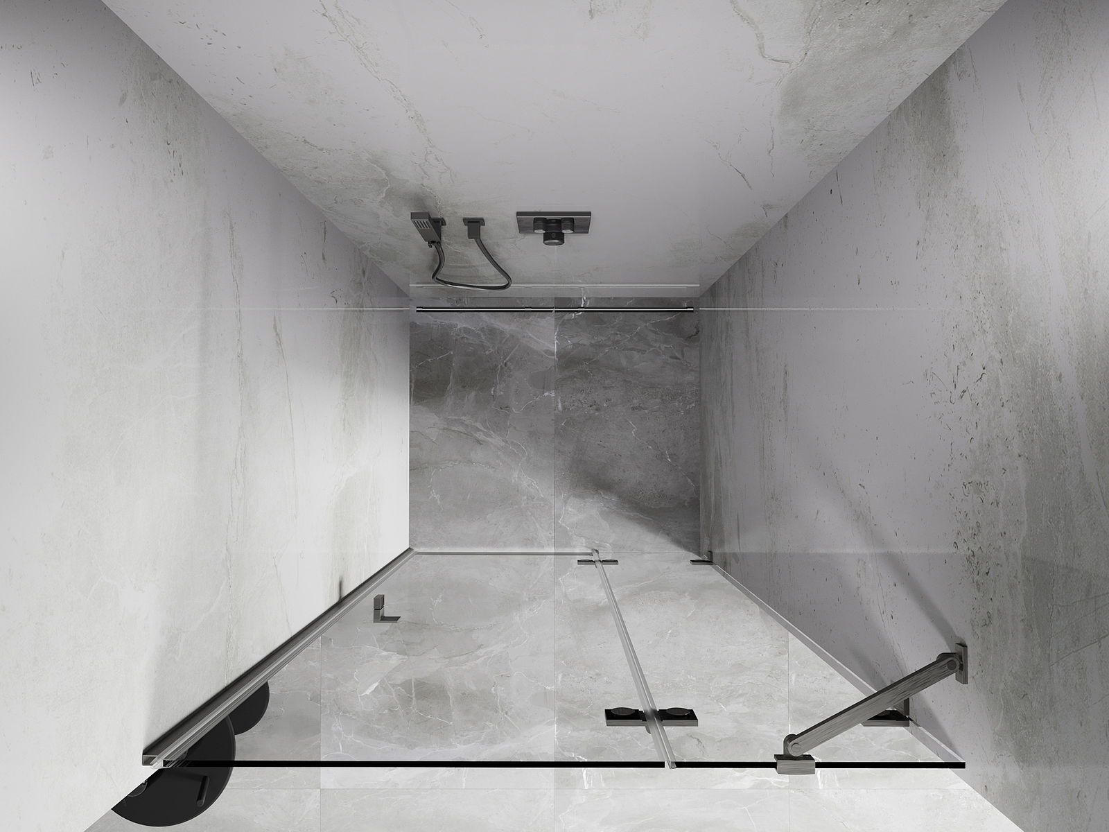 Skavas un eņģes ir izgatavotas no ļoti izturīga misiņa un papildus veido vienā līmenī esošu stikla virsmu. Tas ir lieliska izvēle, kas apvieno eleganci, izturību un modernu dizainu. Šādi risinājumi paaugstina dušas estētiku un vienlaikus atvieglo tīrības uzturēšanu.