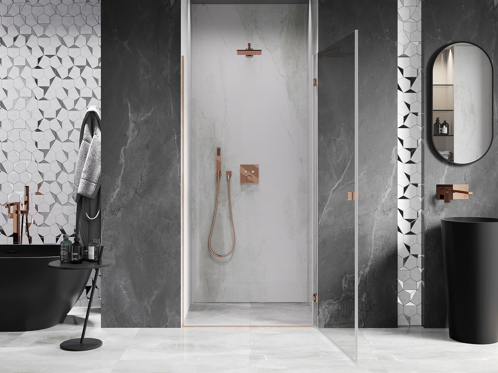 Mexen Lunar-B labās veramās dušas durvis 80 cm, caurspīdīgas, matēts varš - 832-080-000-65-00-P
