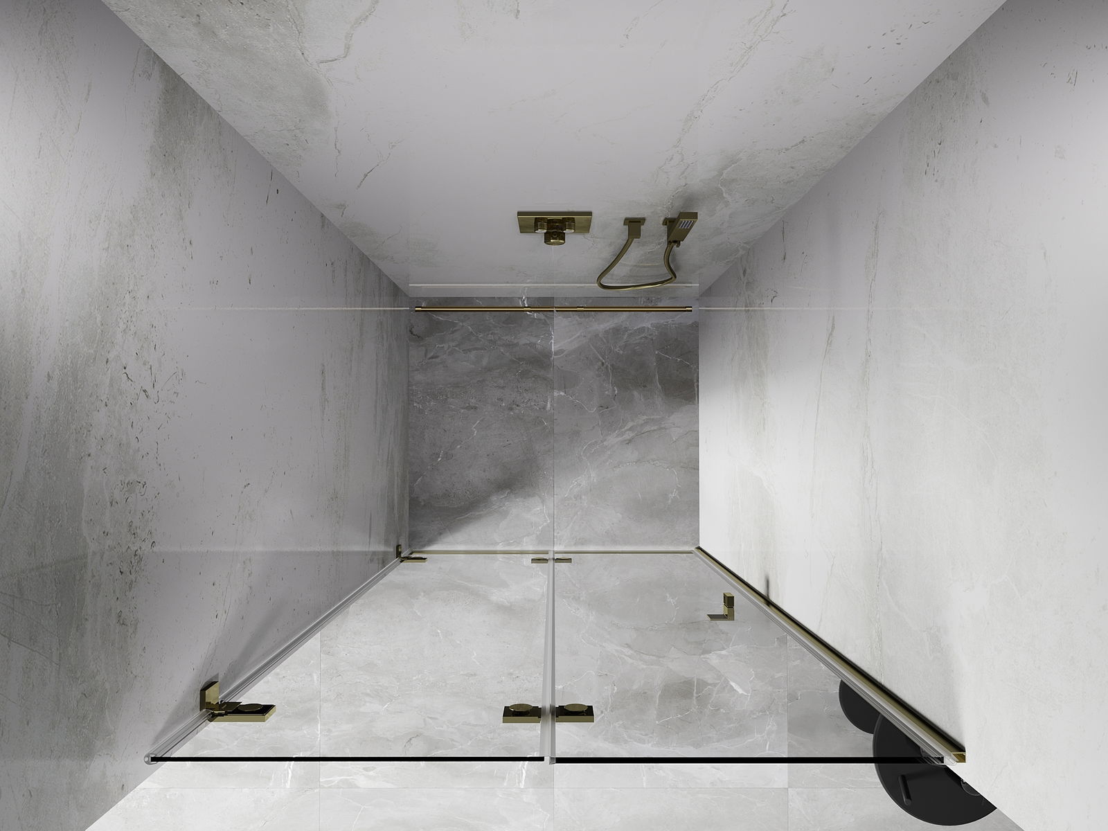 Mexen Lunar-F kreisās, saliekamās dušas durvis, 80 cm, caurspīdīgas, zelta - 836-080-000-50-00-L