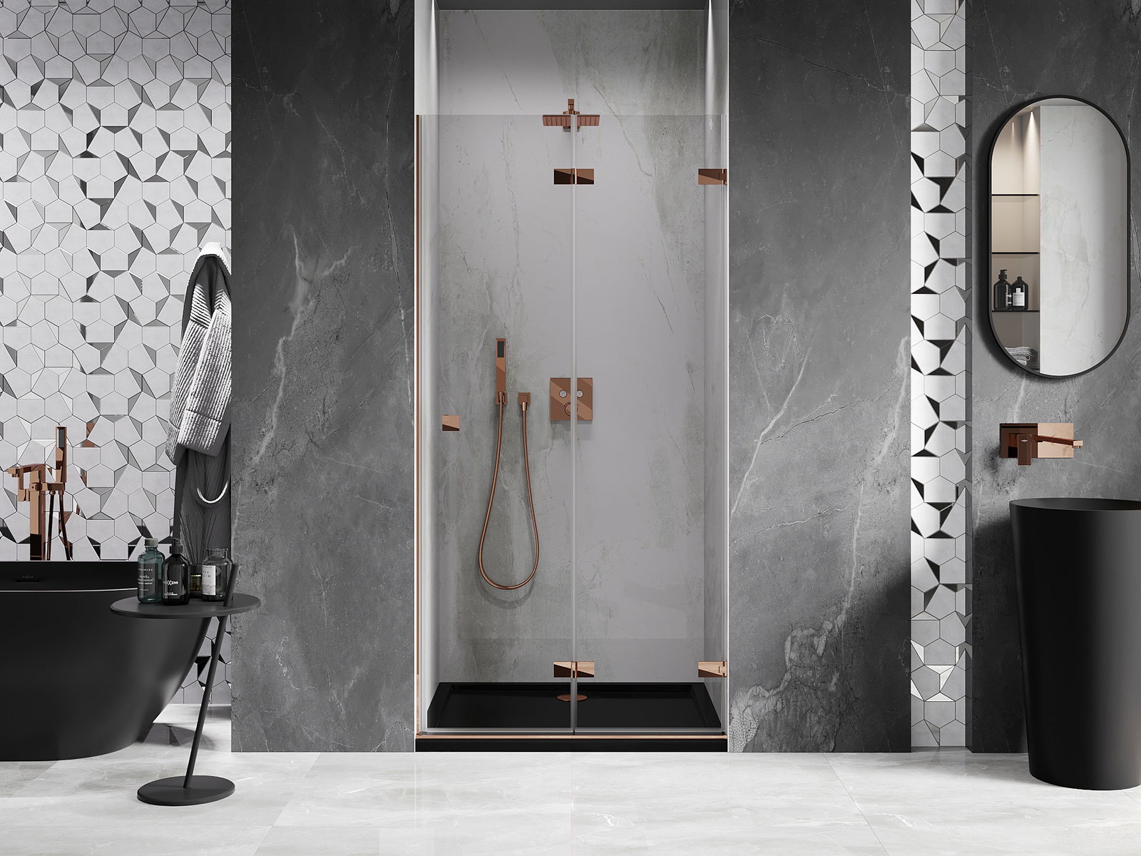 Mexen Lunar-F saliekamās dušas durvis labais 80 cm, caurspīdīgas, rozā zelts - 836-080-000-60-00-P