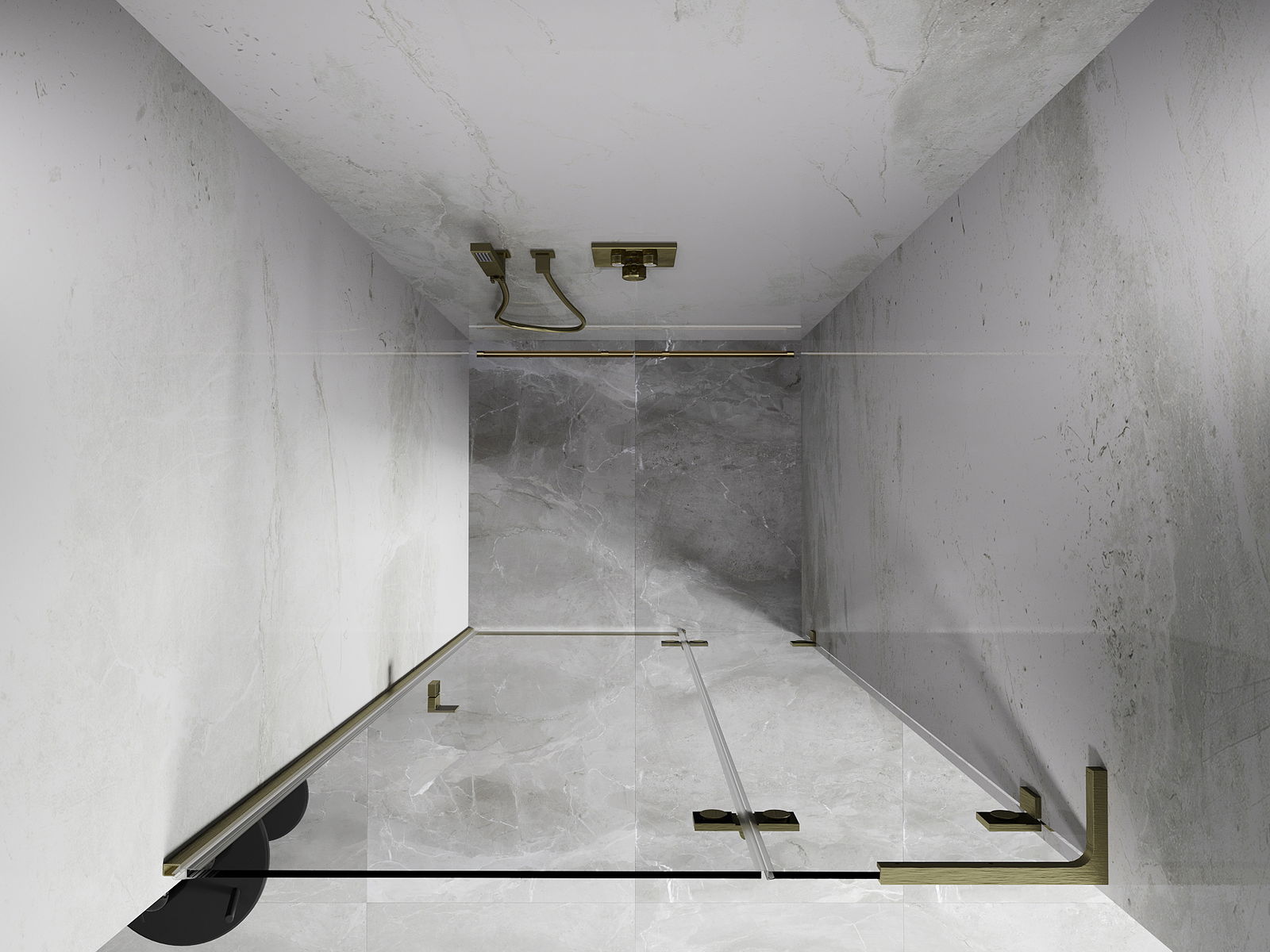 Skavas un eņģes ir izgatavotas no ļoti izturīga misiņa un papildus veido vienā līmenī esošu stikla virsmu. Tas ir lieliska izvēle, kas apvieno eleganci, izturību un modernu dizainu. Šādi risinājumi paaugstina dušas estētiku un vienlaikus atvieglo tīrības uzturēšanu.