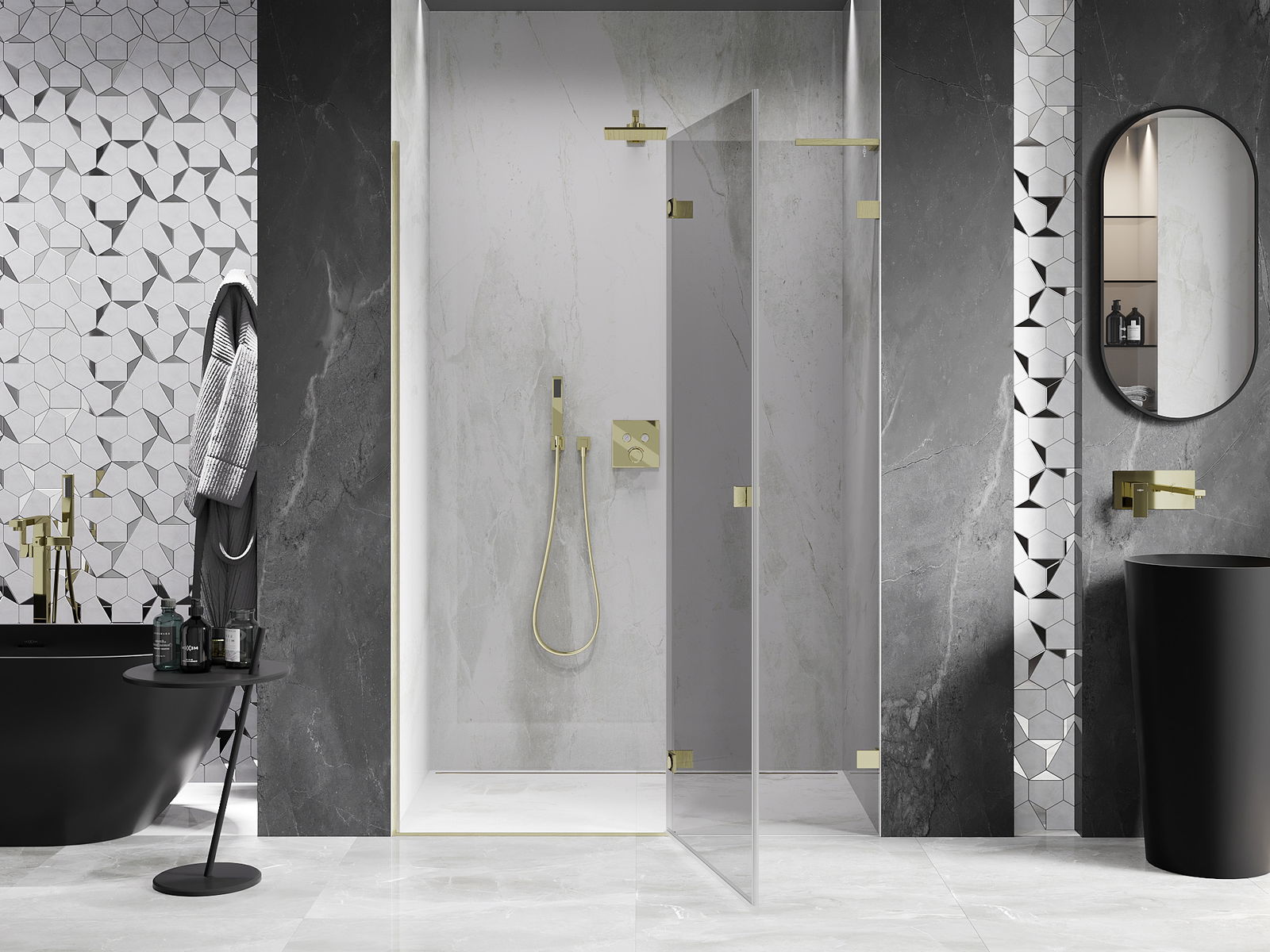 Mexen Lunar L labās puses dušas durvis 140 cm, caurspīdīgs, zeltaini matēts - 834L-140-000-55-00-P