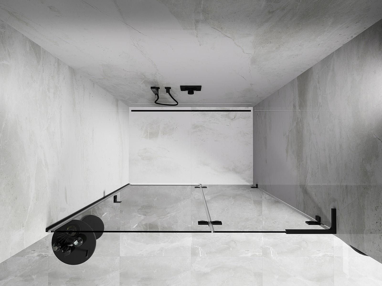 Mexen Lunar L labās puses atveramas dušas durvis 135 cm, caurspīdīgas, melnas - 834L-135-000-70-00-P