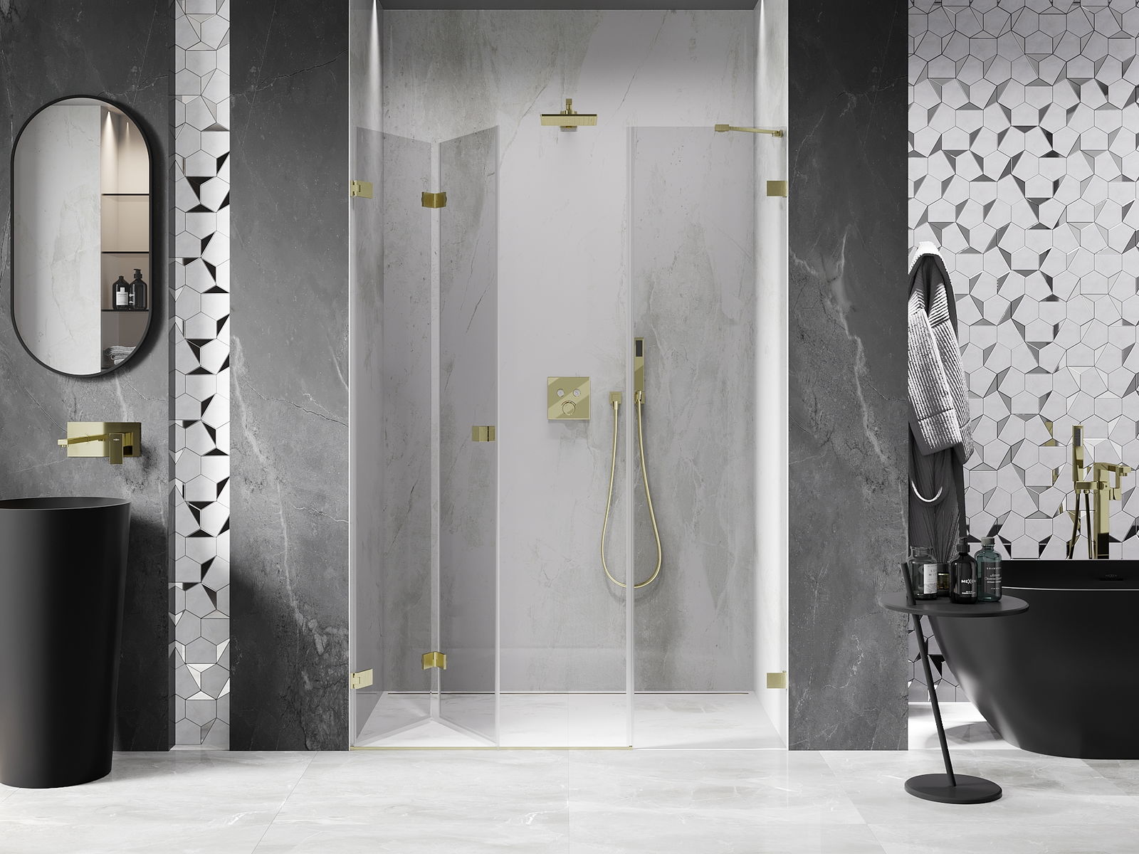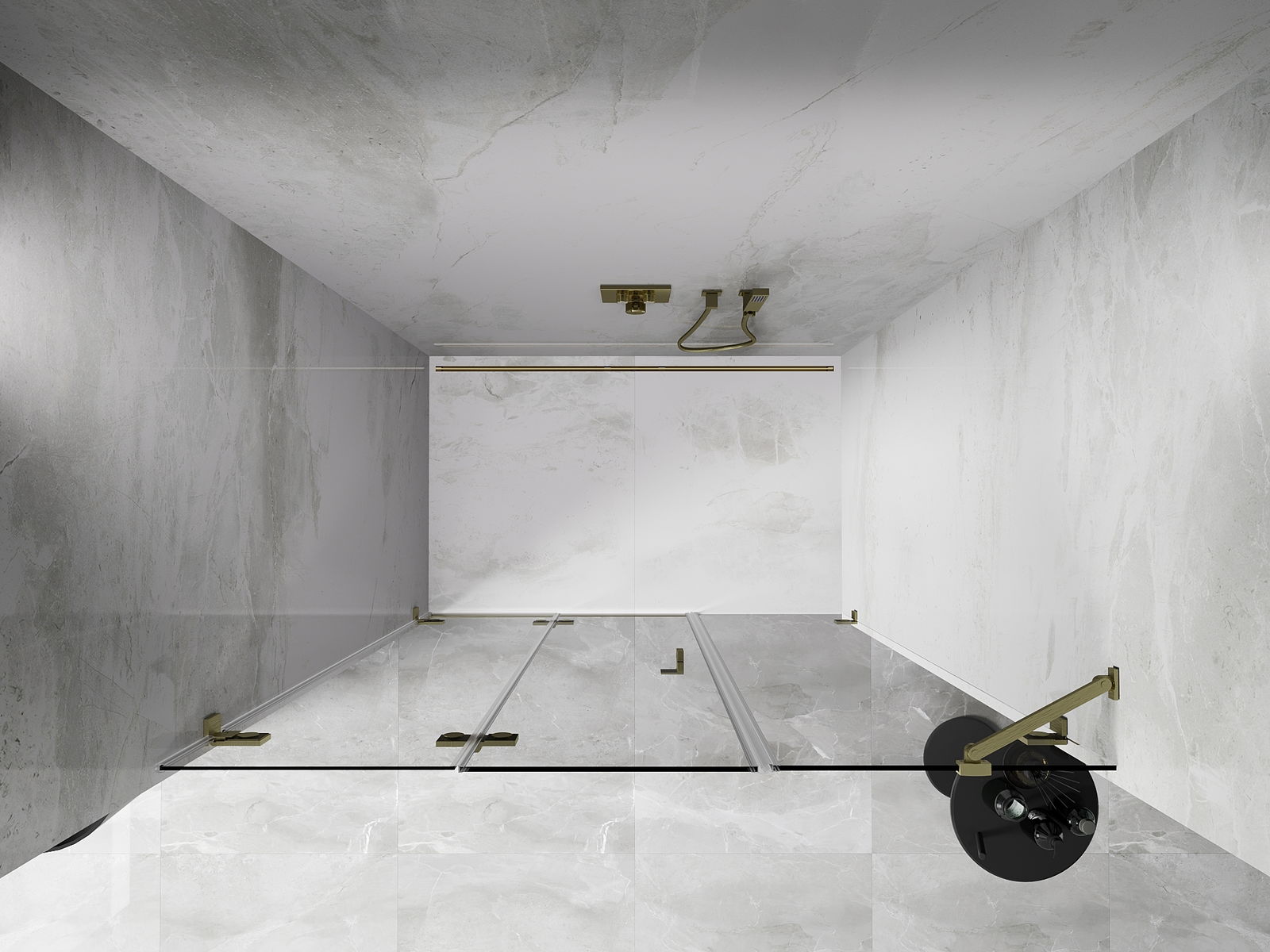 Mexen Lunar-F salokāmās dušas durvis, kreisā 120 cm, caurspīdīgas, zelta matēts - 836S-120-050-55-00-L