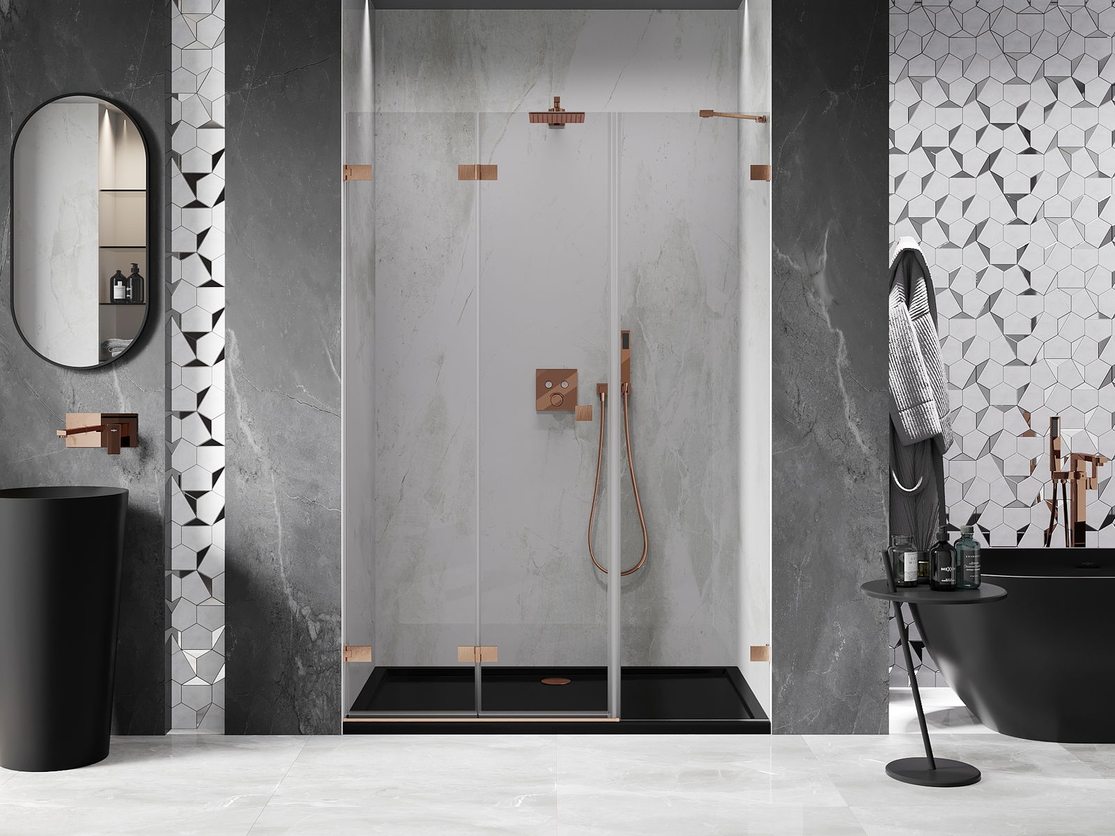 Mexen Lunar-F saliekamās dušas durvis kreisās 120 cm, caurspīdīgs, matēts varš - 836S-120-050-65-00-L