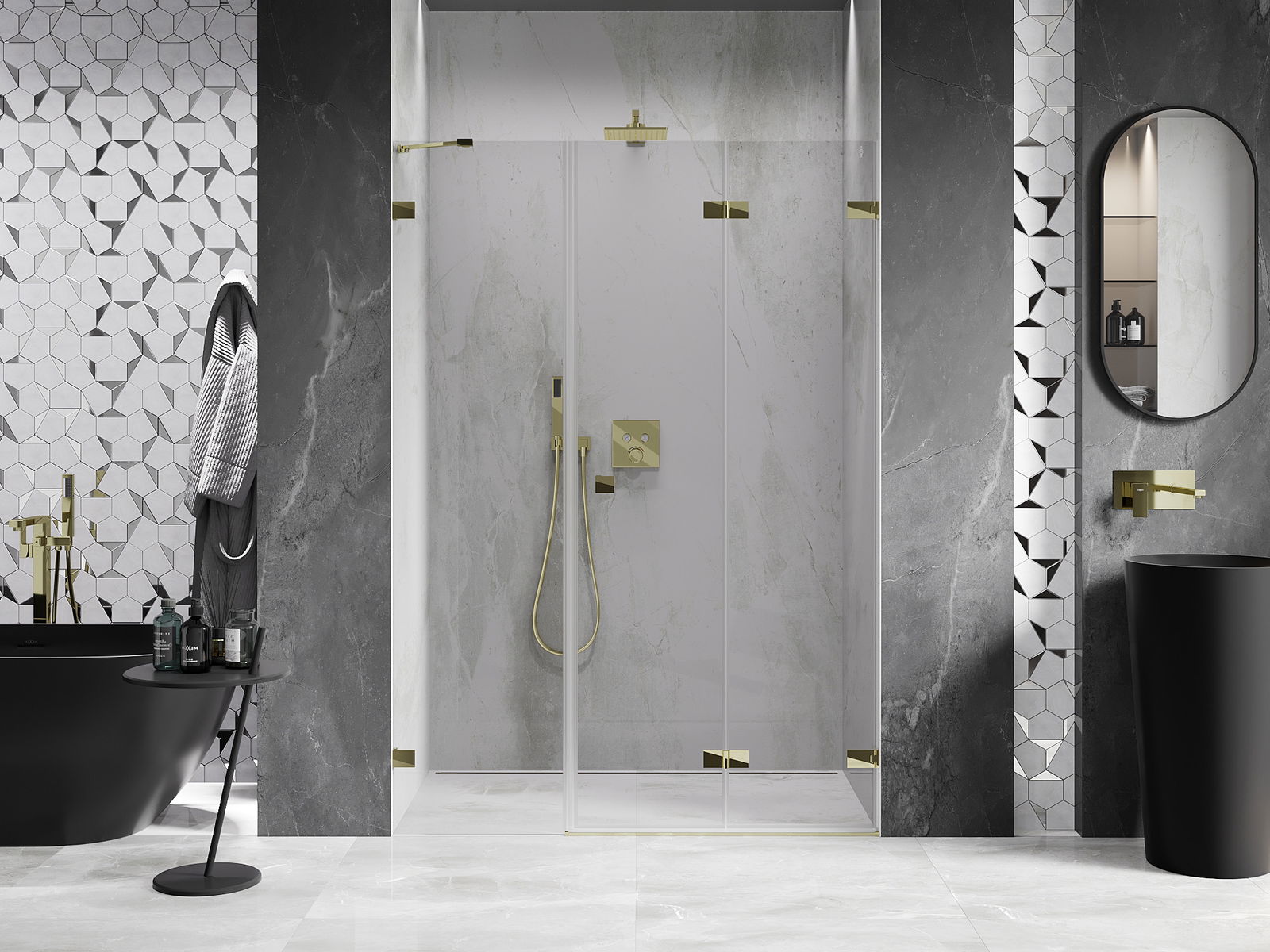 Iespēja salocīt durvis gan uz āru, gan uz iekšpusi, ļauj iegūt vairāk vietas, kad duša netiek izmantota. Tas ir ideāls risinājums mazākām vannas istabām, maksimāli izmantojot pieejamo telpu.