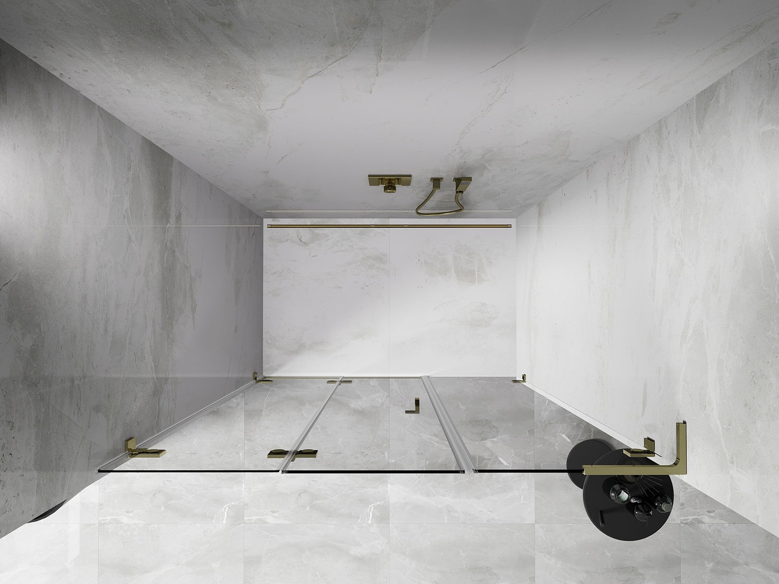 Mexen Lunar-F L salokāmas kreisās puses dušas durvis 115 cm, caurspīdīgas, zelta - 836SL-115-050-50-00-L