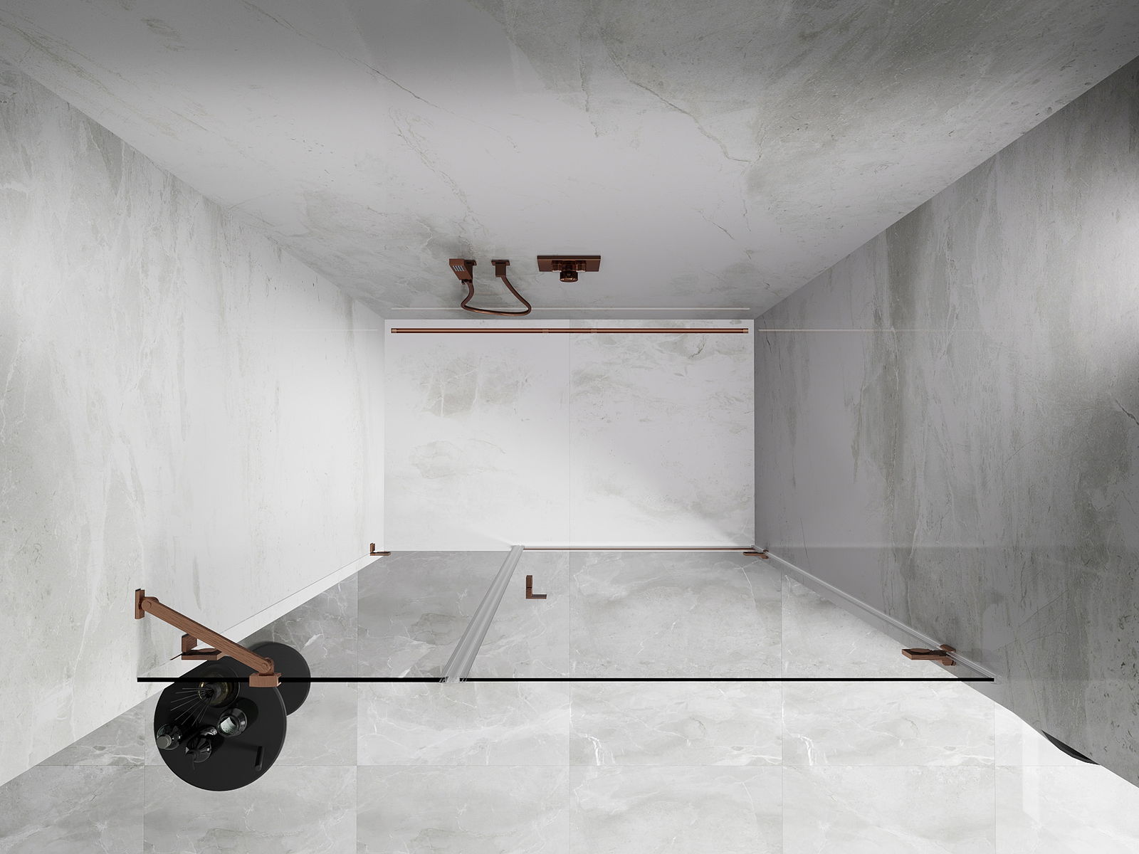 Mexen Lunar-B dušas durvis, atveramas pa labi, 115 cm, caurspīdīgas, matēts varš - 832S-115-050-65-00-P
